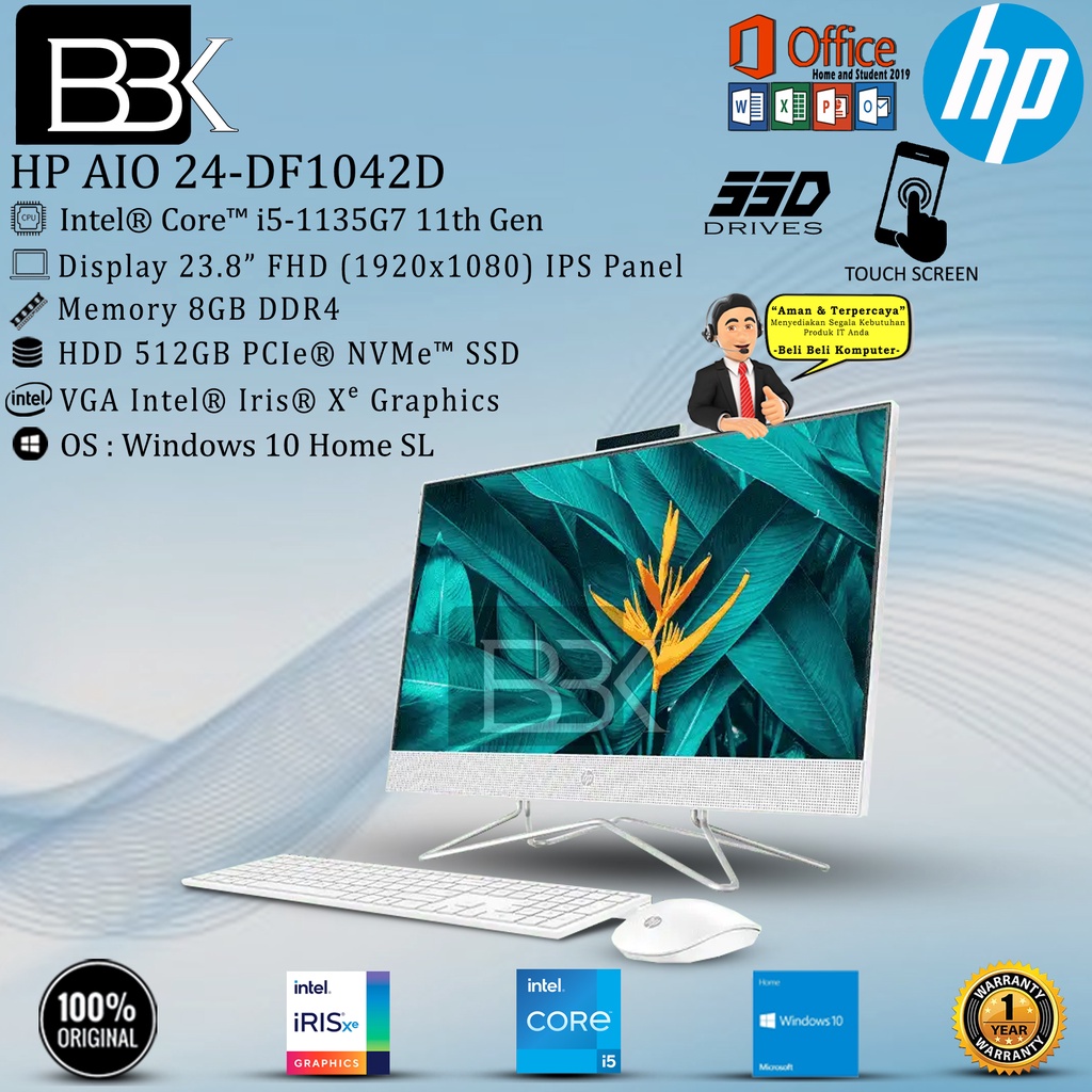 HP PC 24-DF1042D AIO i5-1135G7 8GB 512GB SSD DVDRW WIN10HSL 1YR OHS