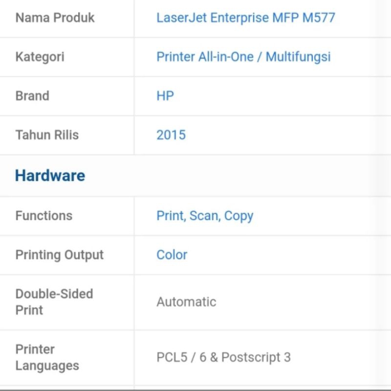 HP Printer LaserJet enterprise M577