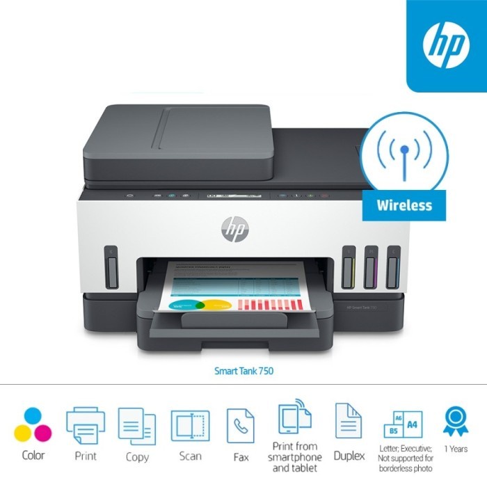 HP Smart Tank 750 All in One Color/Print Scan Copy Wireless Printer