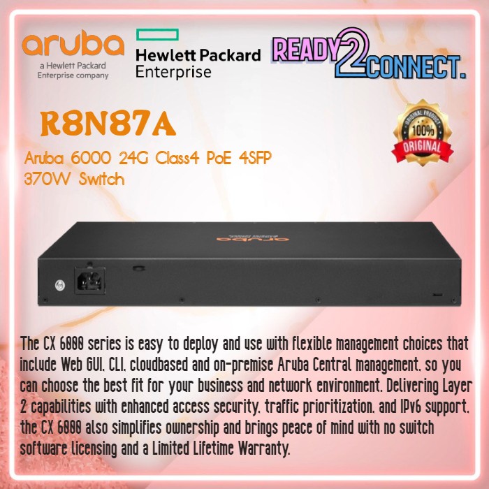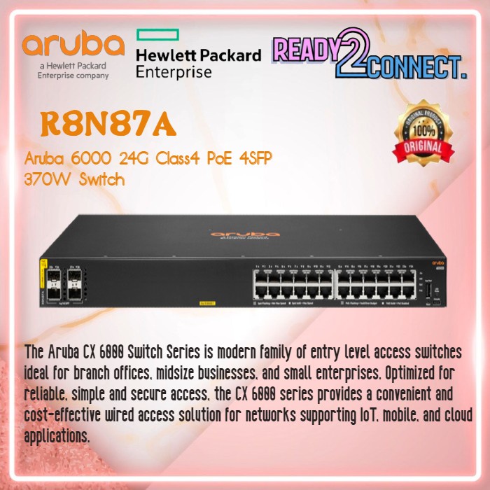 HPE Aruba R8N87A CX6000 24G Class4 PoE 4SFP 370W Switch
