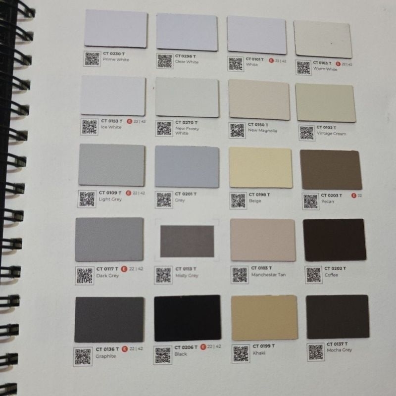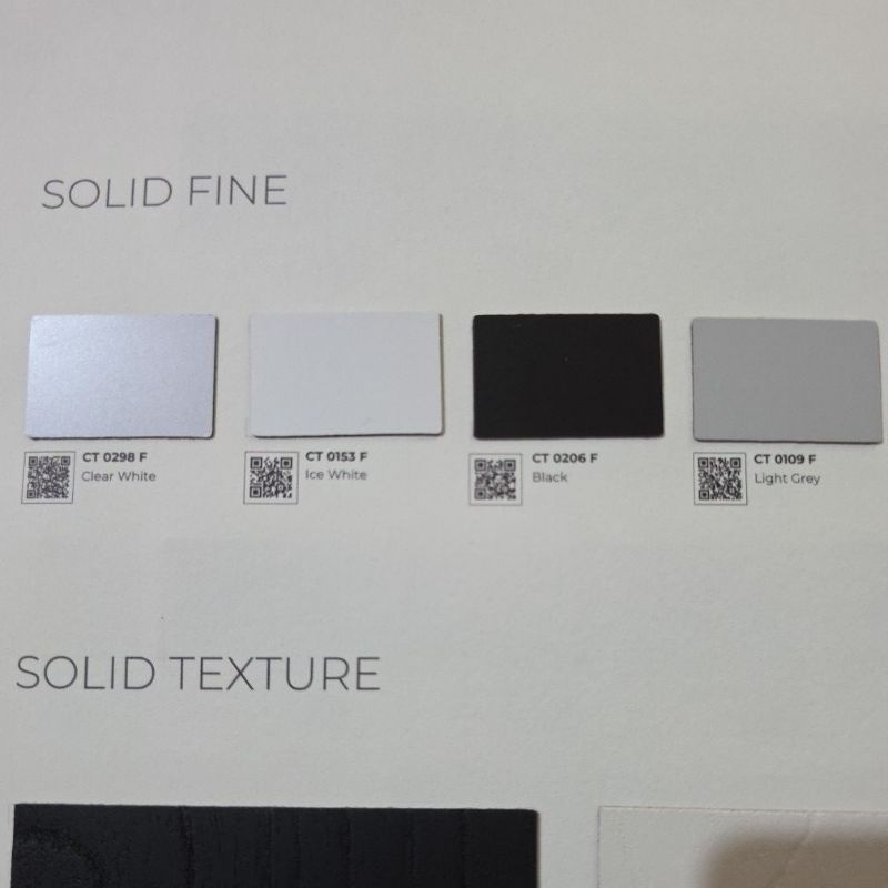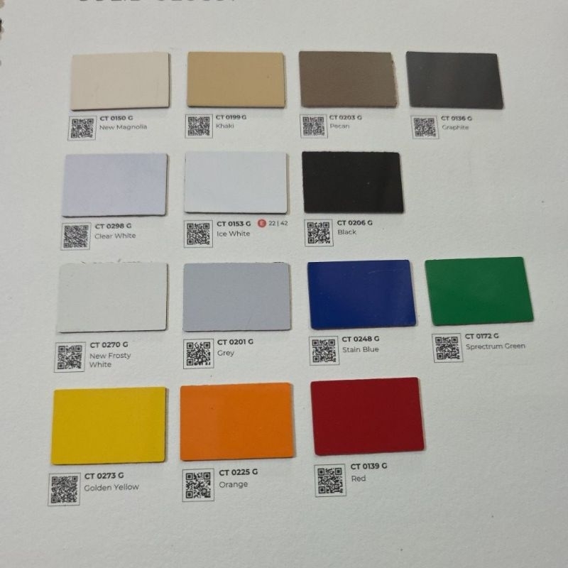 HPL carta warna solid polos CT 01XX / CT 02XX tipe T / F / G finishing glossy, doff, matt