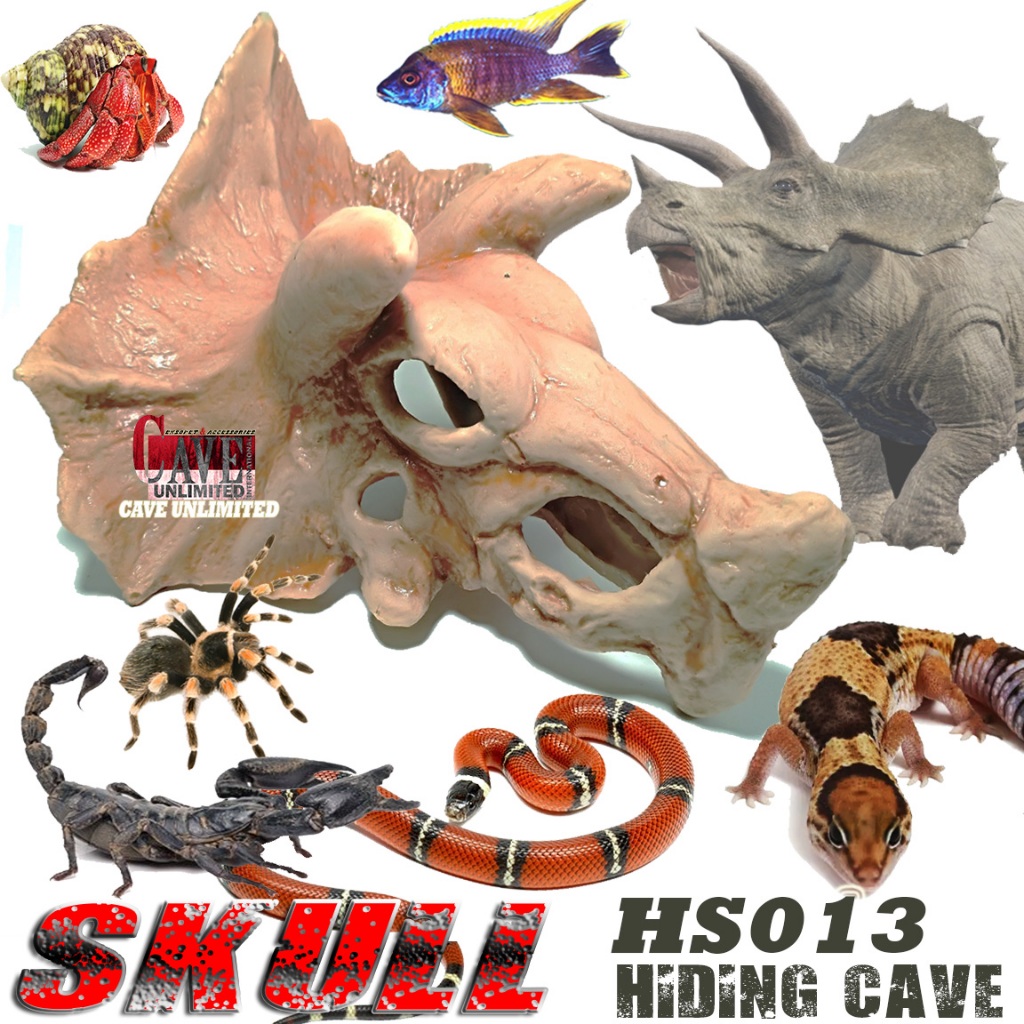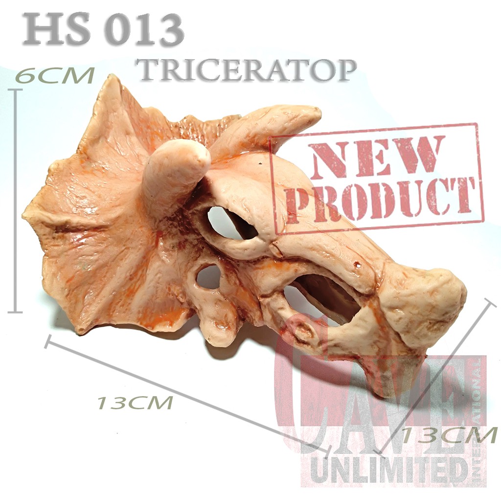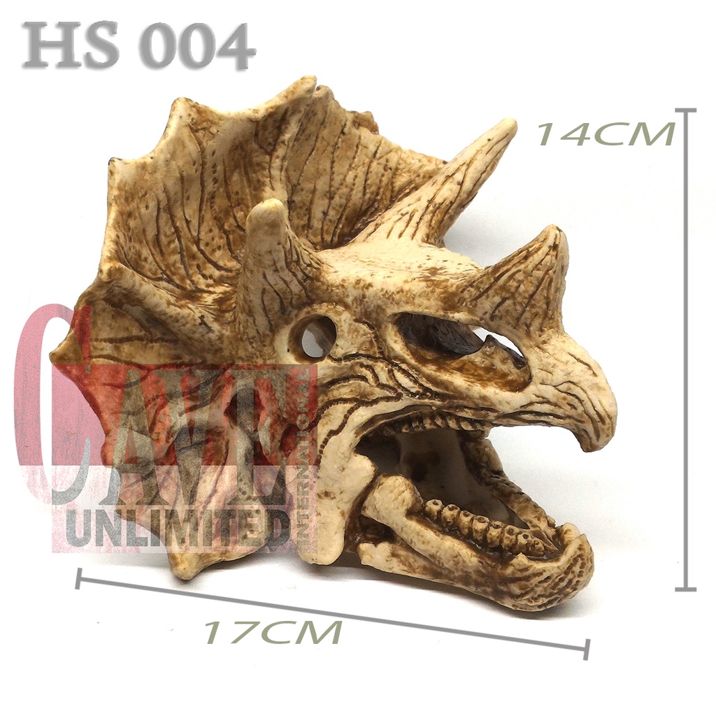 HS013 HIDING SKULL TRICERATOPS KERANGKA DINOSAURUS JURRASIC TENGKORAK SKELETON HEWAN HIASAN KANDANG REPTILE DEKORASI AKUARIUM IKAN TEMPAT SEMBUNYI GECKO KADAL ULAR KELOMANG INSECTA KALAJENGKING TORTOISE DEKORASI TERRARIUM REPTIL