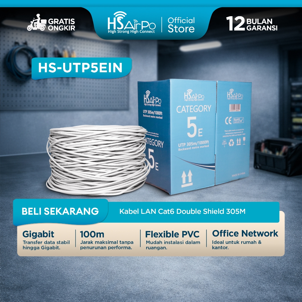 HSAirPo HS-UTP5EIN Kabel LAN Jaringan Internet Network UTP Indoor Cat 5 Cat5 Cat 5e Cat5e HS AirPo UTP5EIN N1