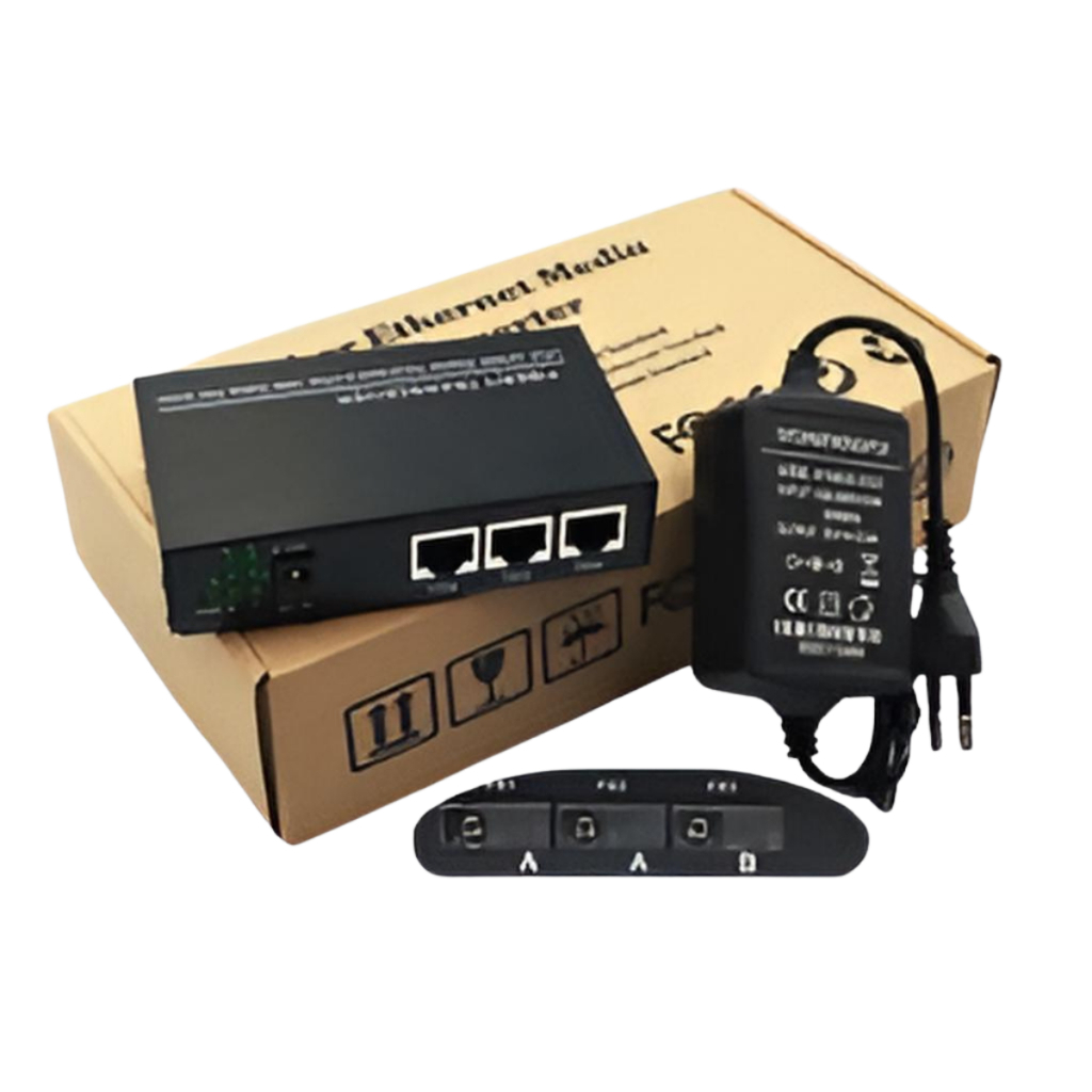 HTB 3F3E Media Converter 3 FO 3 Lan RJ45 POE Adapter Fiber Optic CM3F3E Box + Adaptor