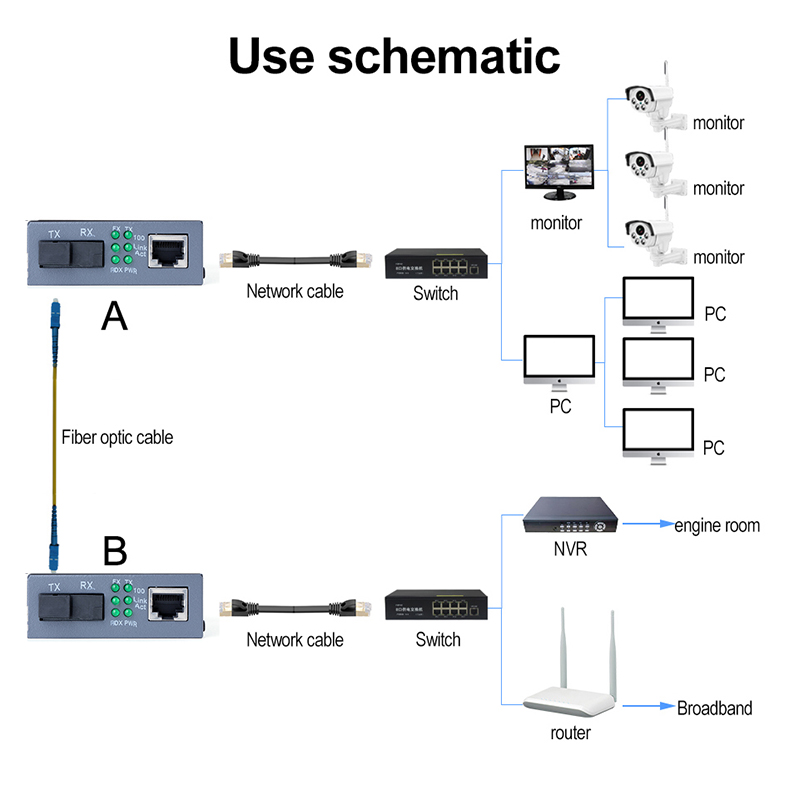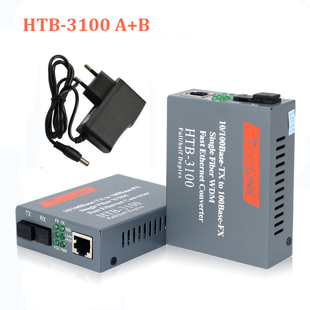 HTB3100 A+B Fiber Optic Optical Media Converter HTB-3100 Netlink 10/100Mbps RJ45 Single Mode 25KM