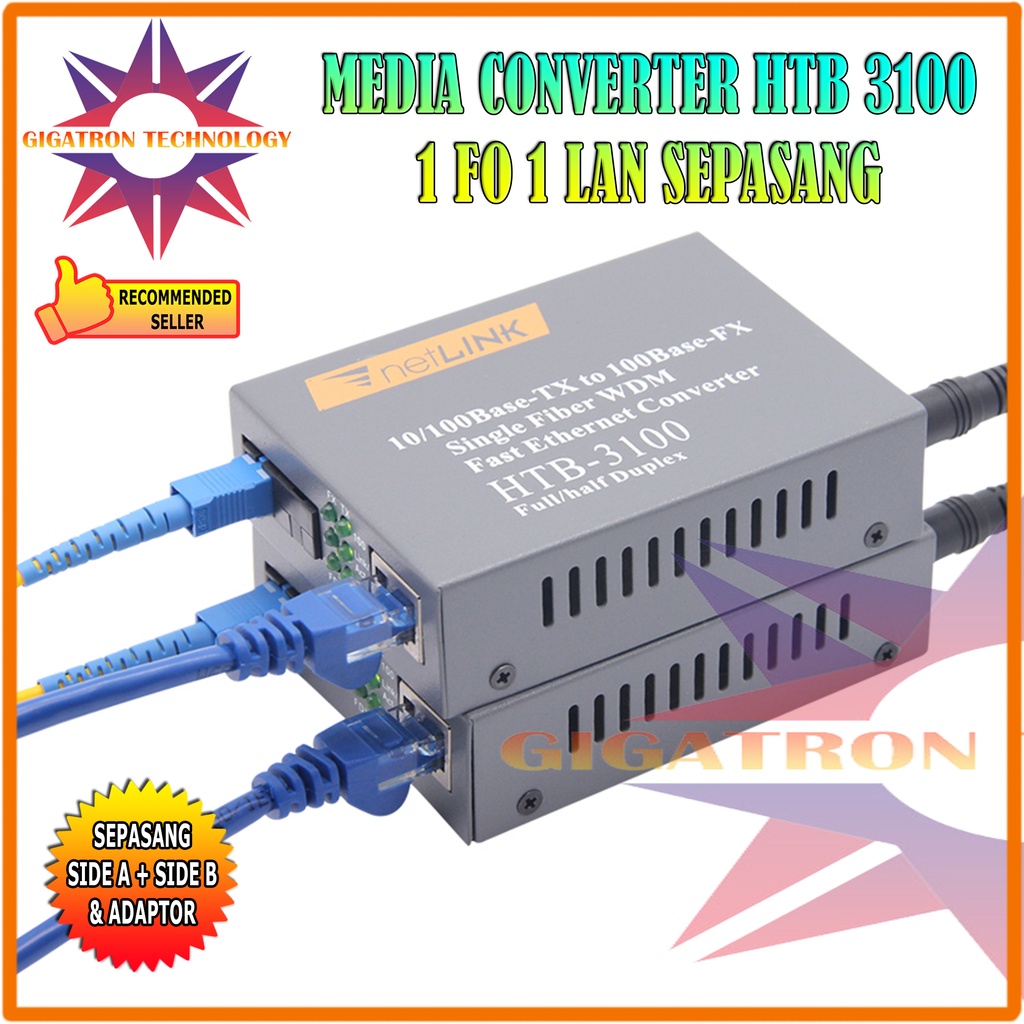HTB3100 Sepasang A+B Netlink Fiber Optic Optical Media Converter Single Mode / HTB-3100AB 1 Pair HTB 3100 1 SET Switch 10/100Mbps RJ45 Singlemode