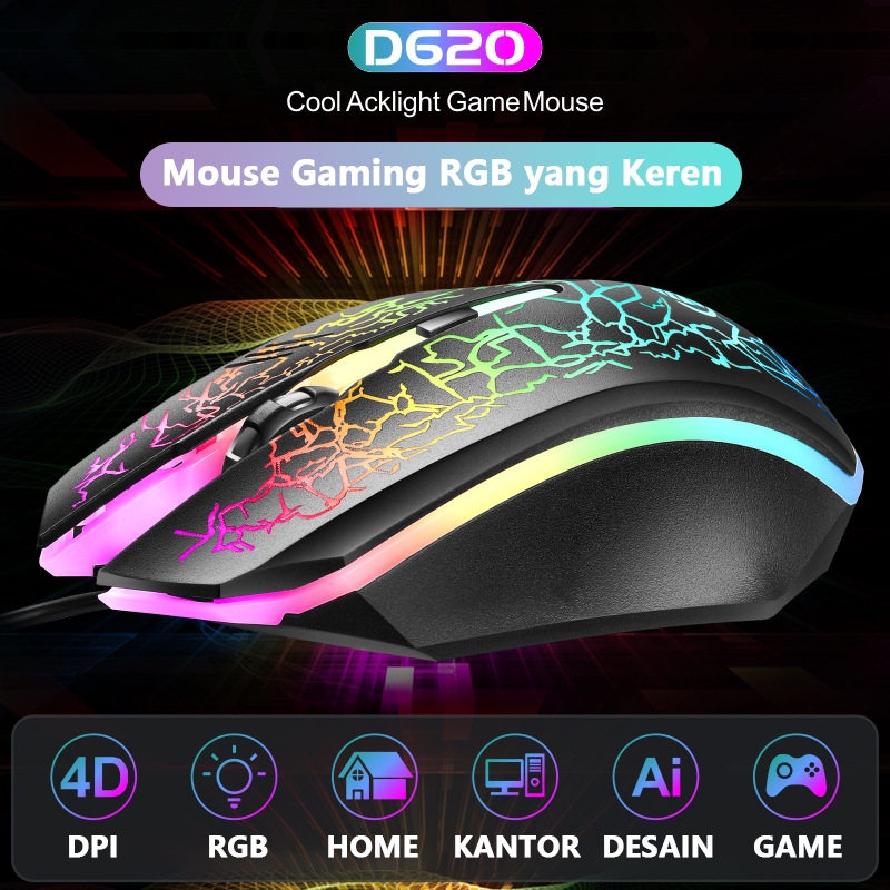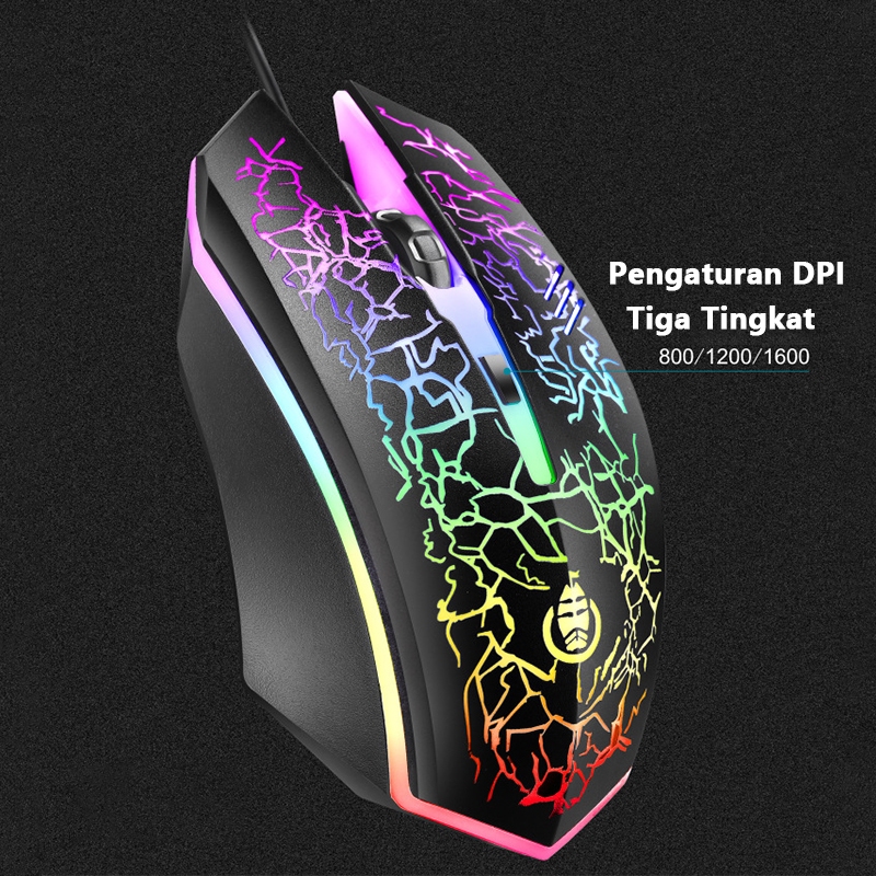 HUAV MOUSE GAMING MACRO 7 TOMBOL LED (RGB) TWOLF Mouse Kabel Gaming/Mouse Gaming