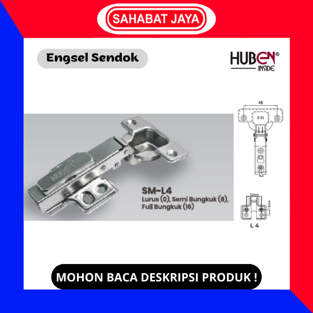 HUBEN Engsel Sendok Slow Motion Soft Close Hidrolis SM M2 L4 Lemari