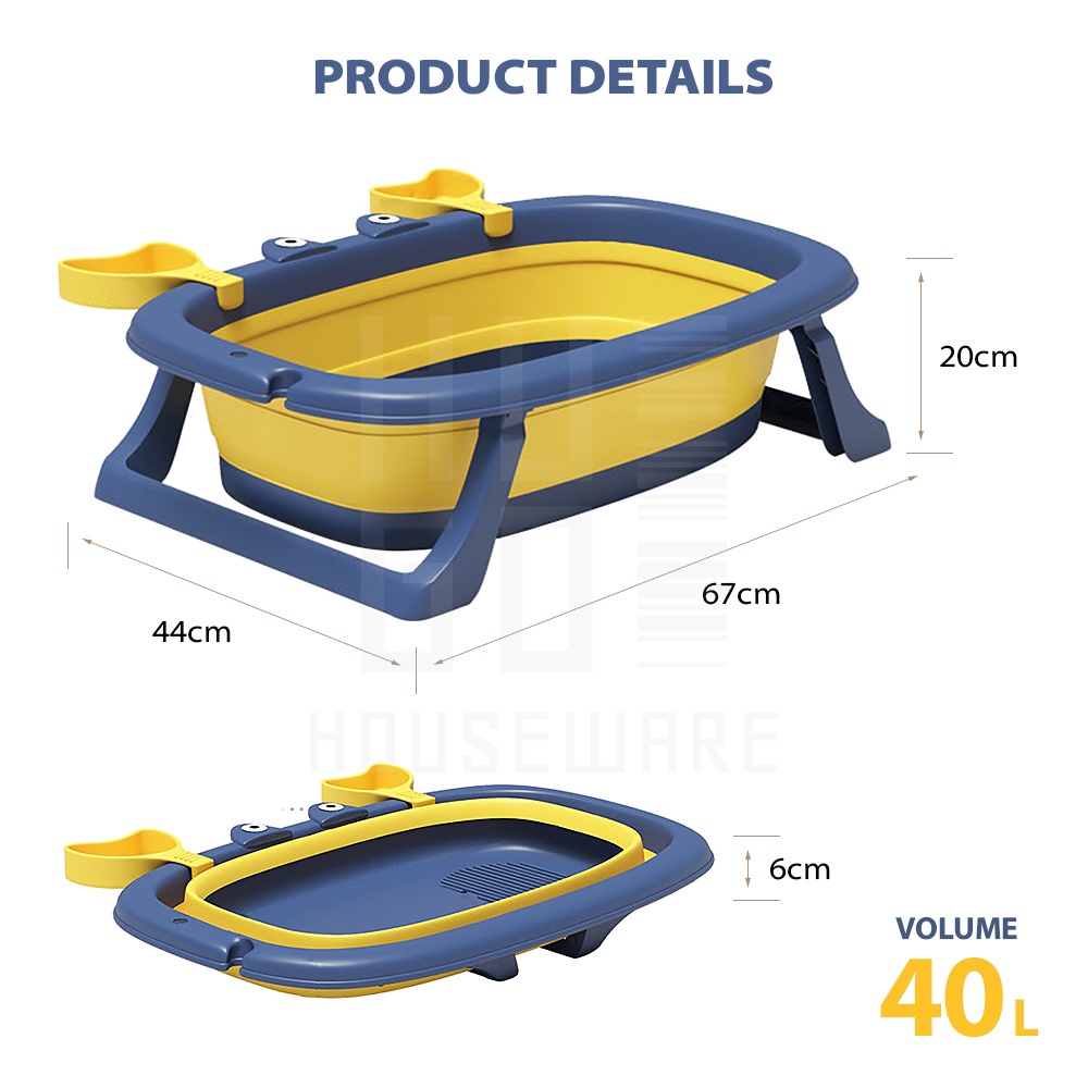 HUGO Bak Mandi Bayi Lipat Silicone Foldable Baby Bathtub Tempat Mandi Bayi Portable