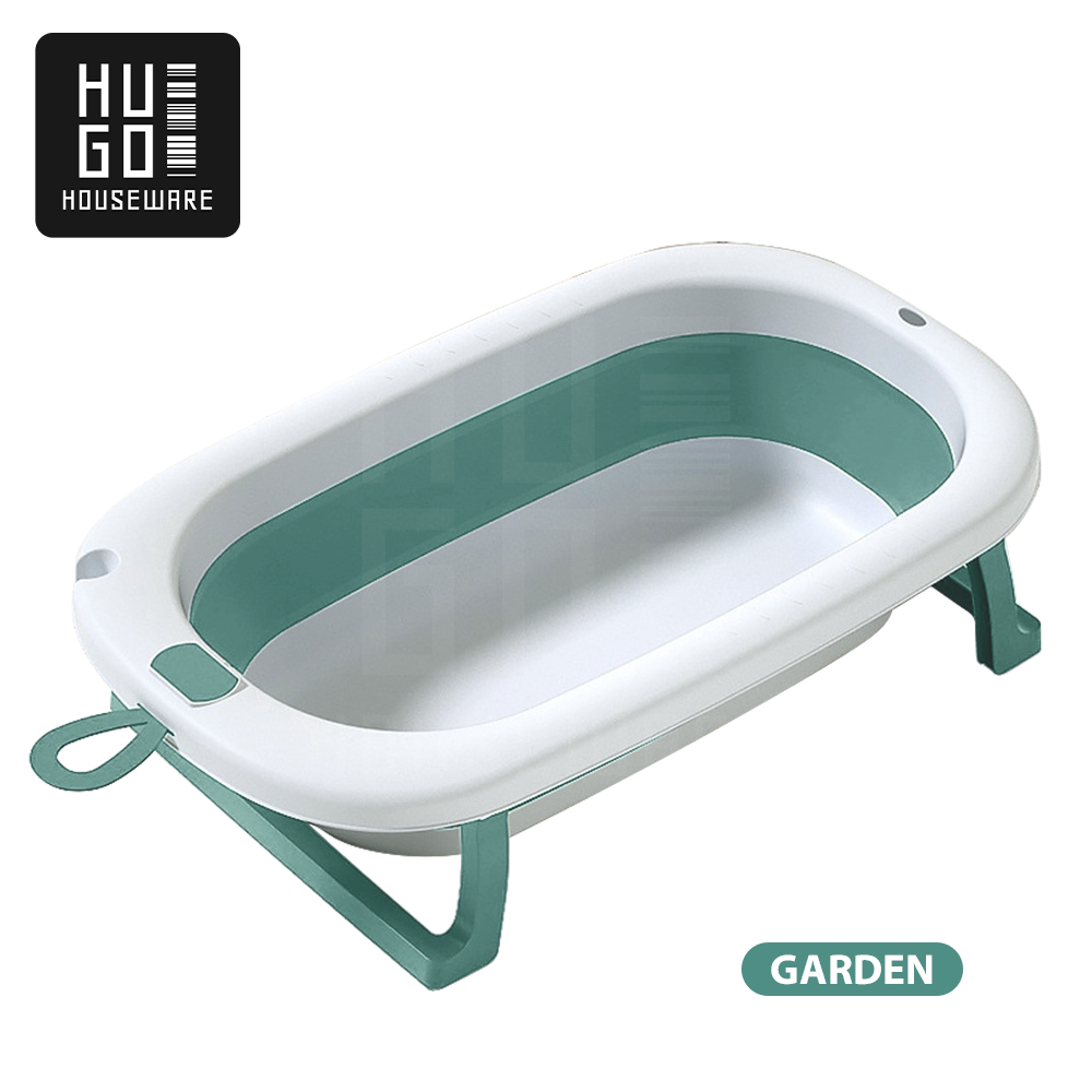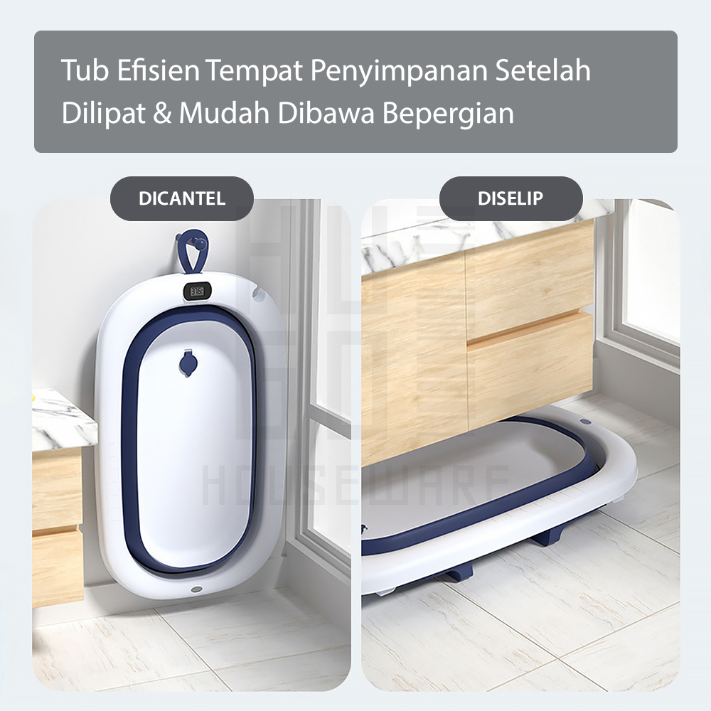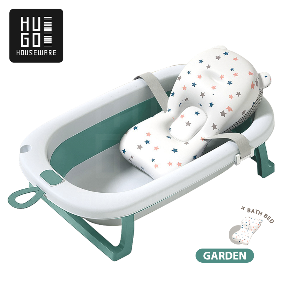 HUGO Foldable Baby Bath Tub / Bak Mandi Bayi Lipat dengan Pengukur Suhu dan Bantal Mandi Tempat Mandi Bayi Portable