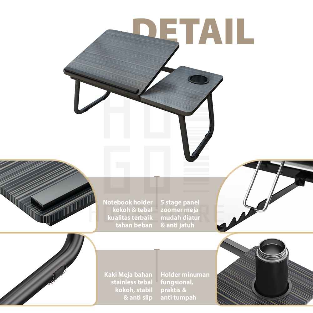 HUGO Meja Laptop Lipat Foldable Desk Zoomer Belajar Serbaguna