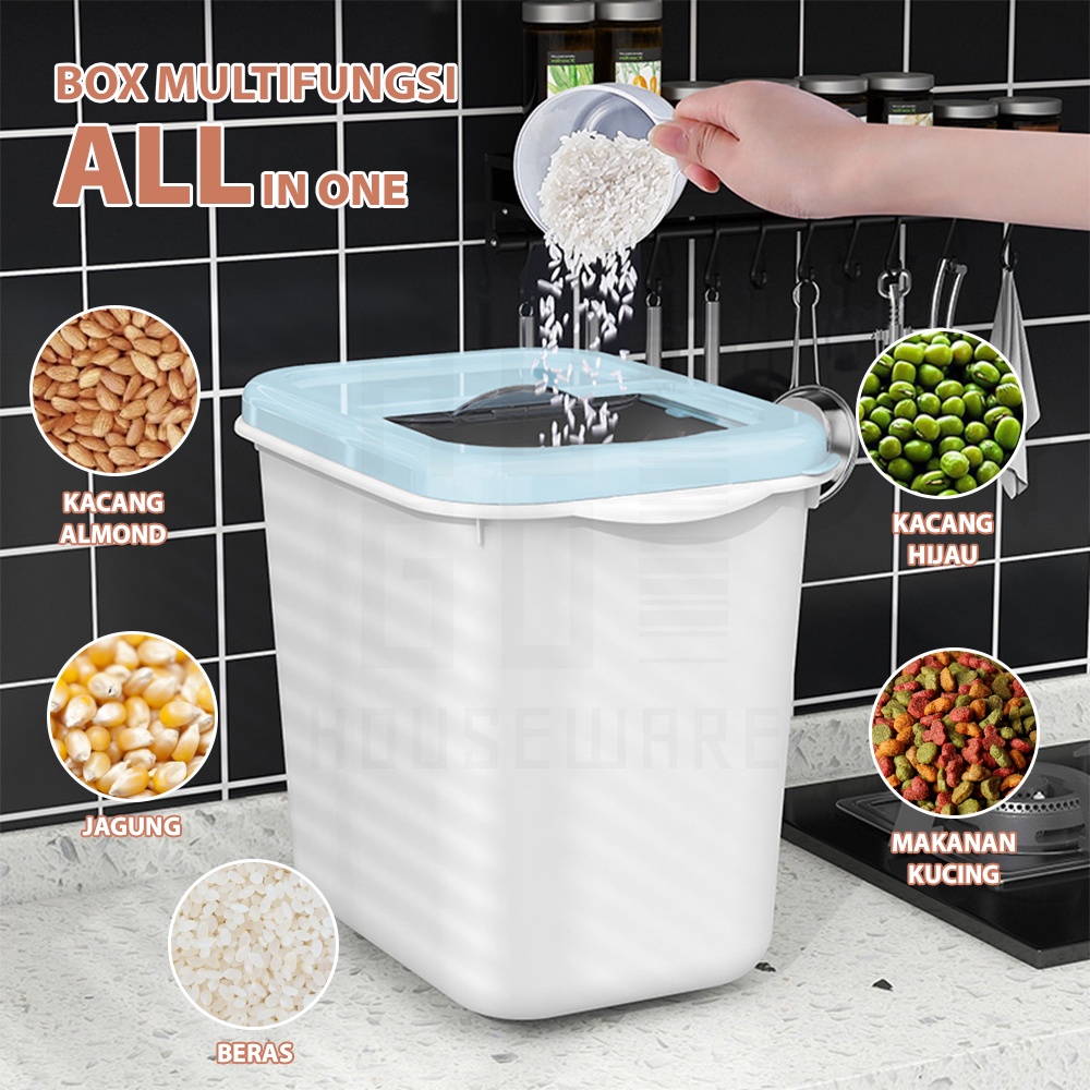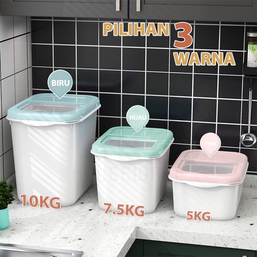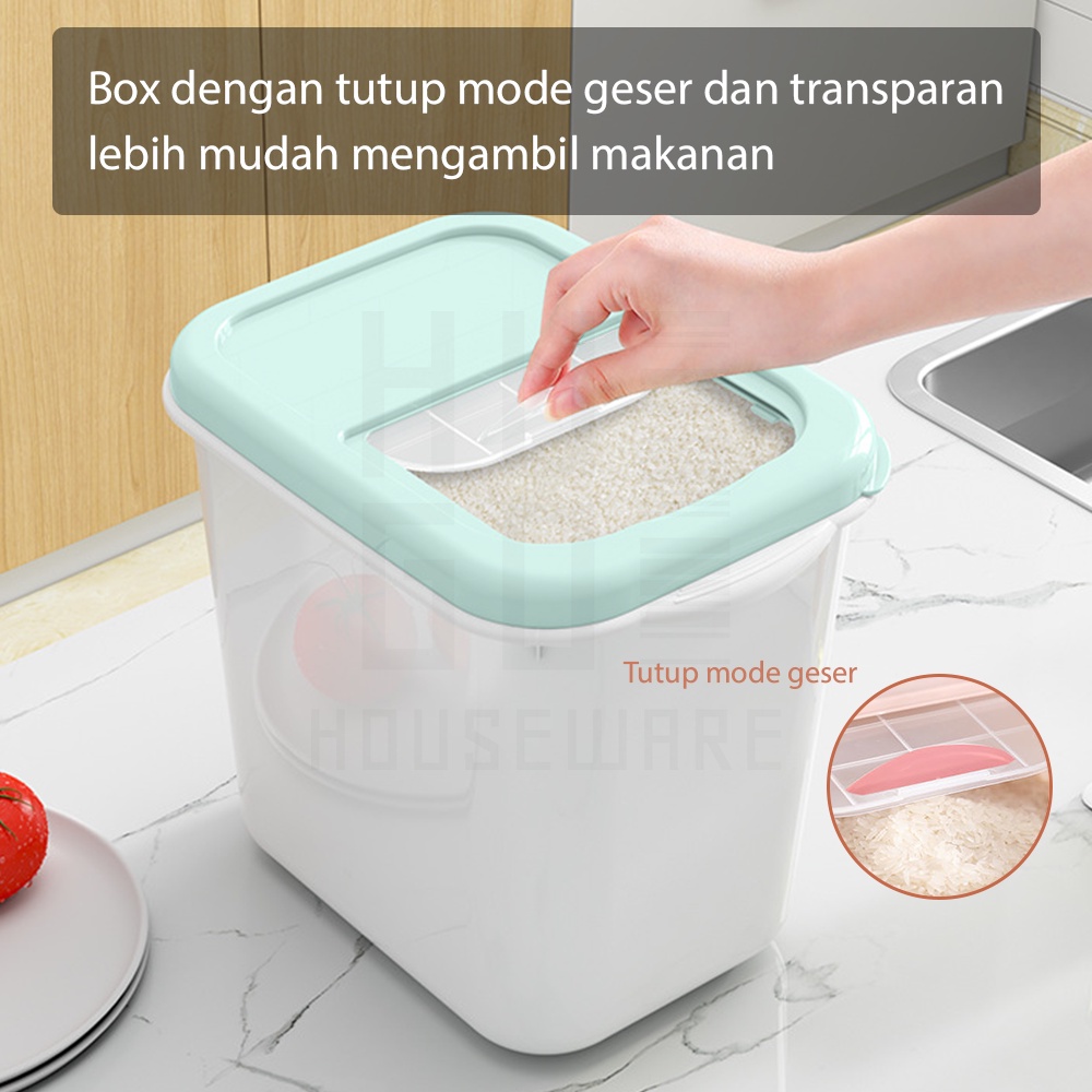 HUGO Tempat Penyimpanan Beras 5 kg / 7.5 kg / 10 kg Dispenser Beras Kotak Beras Anti Serangga