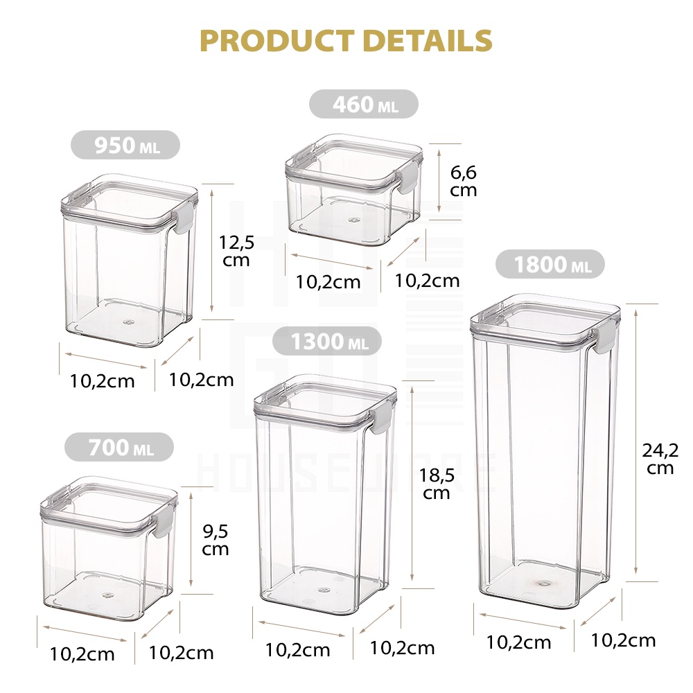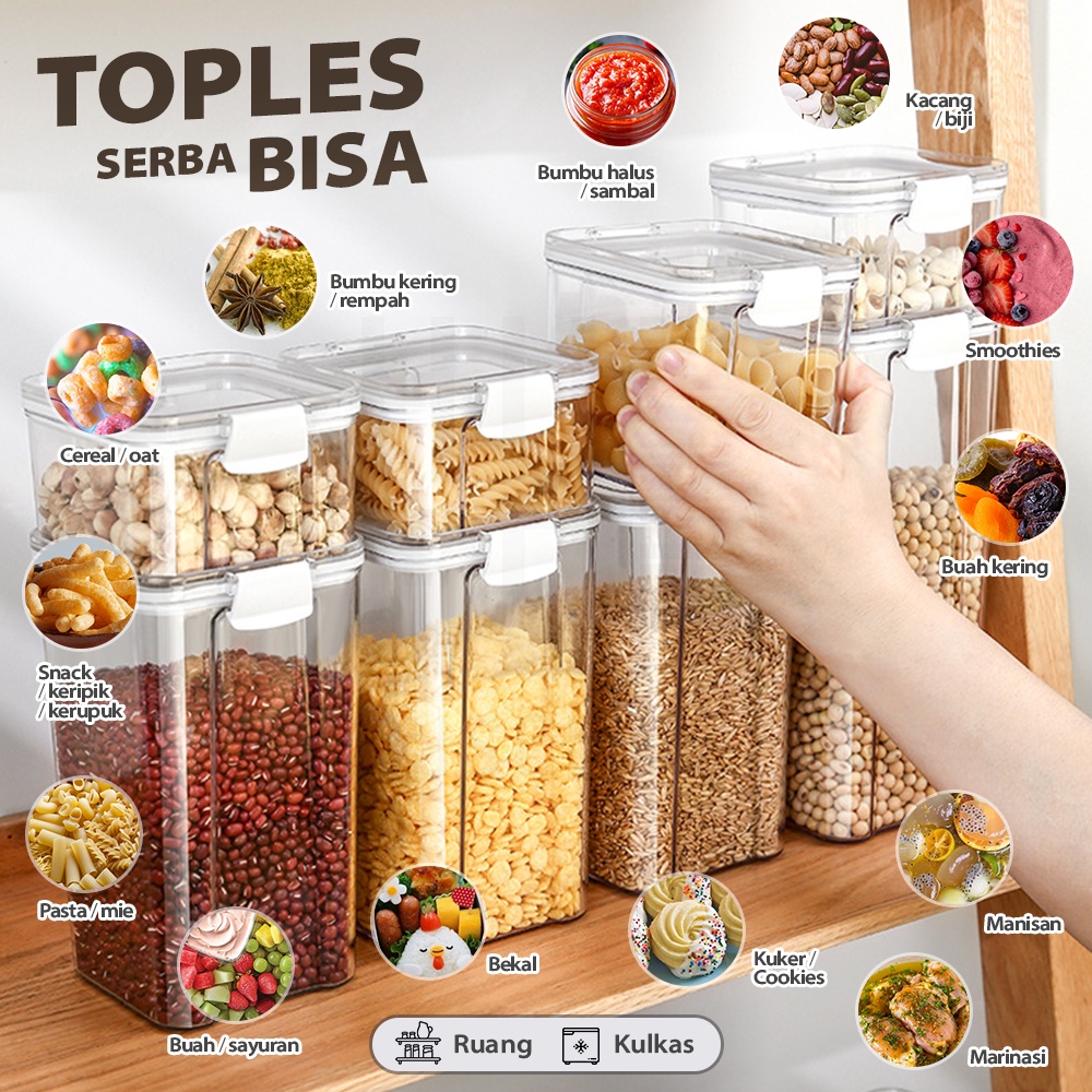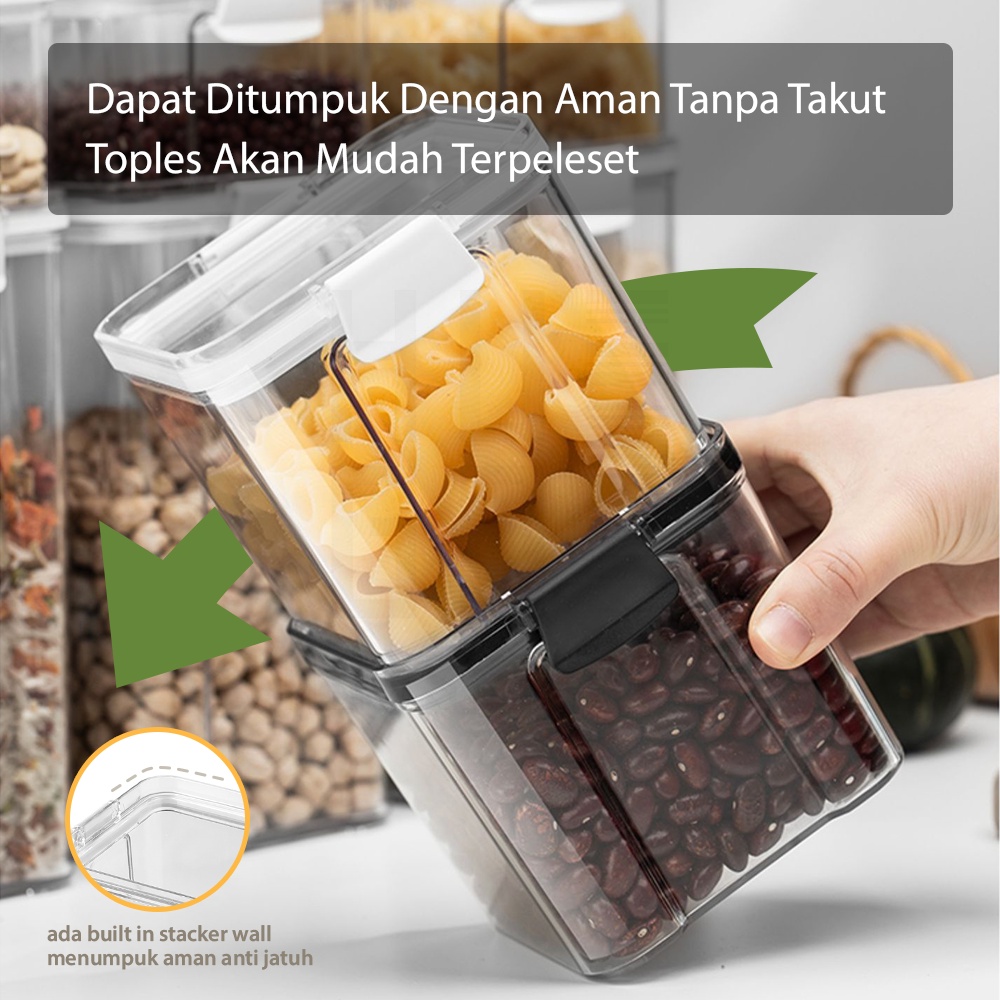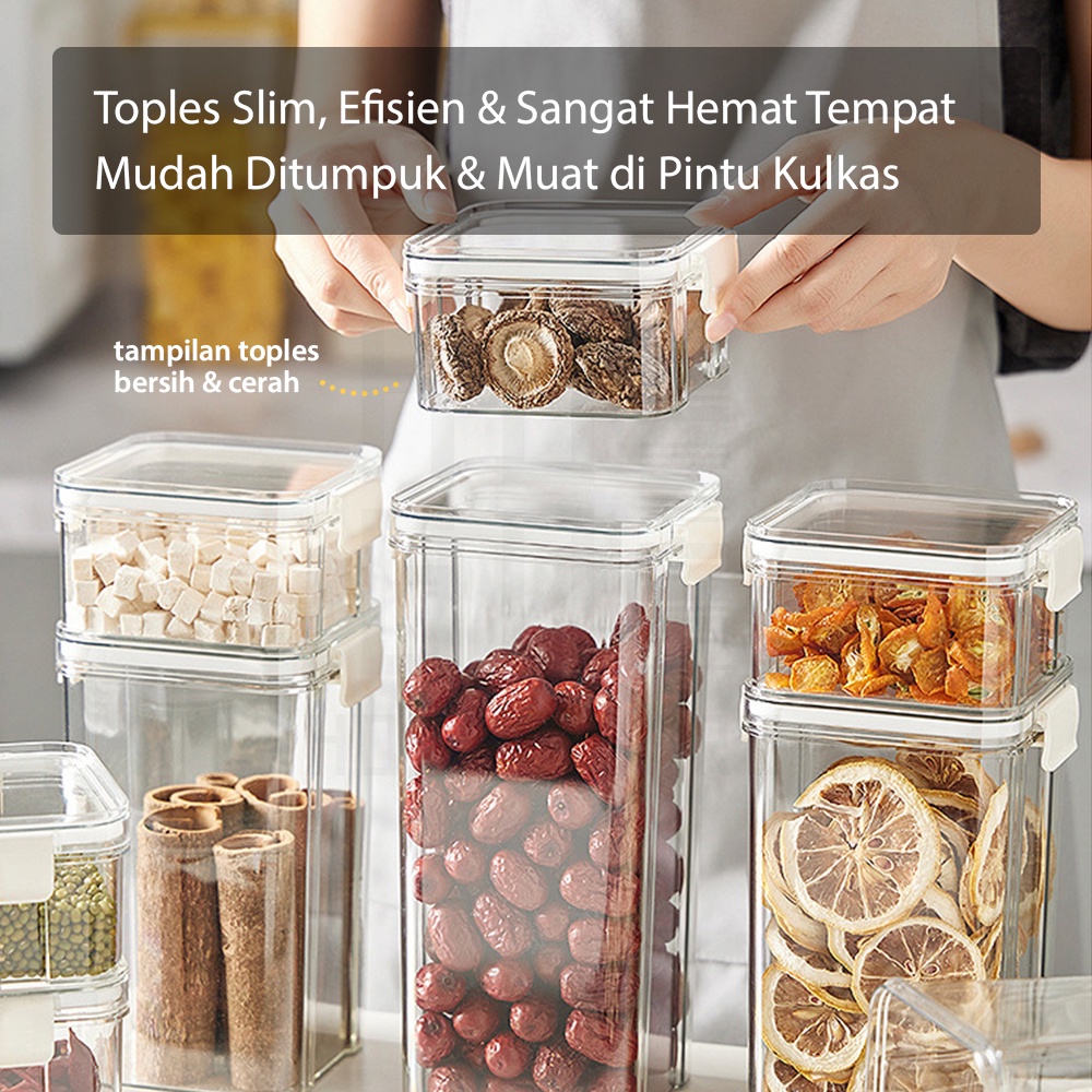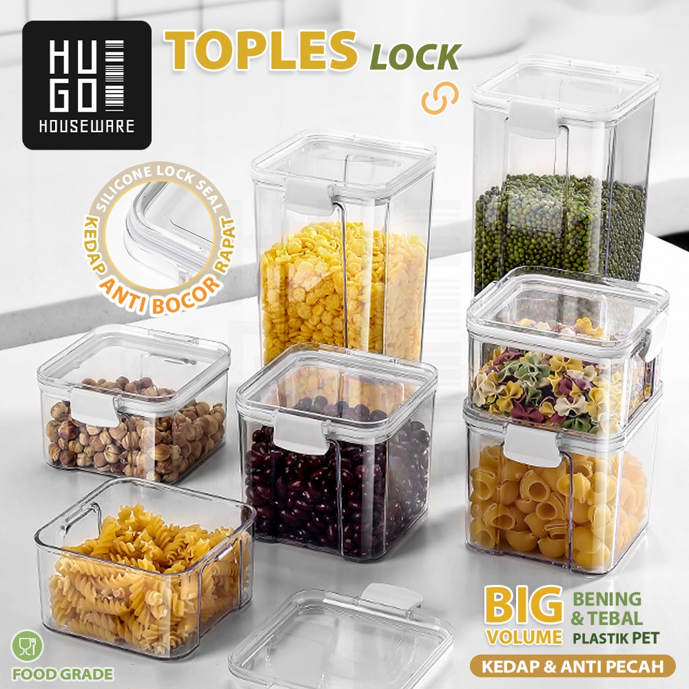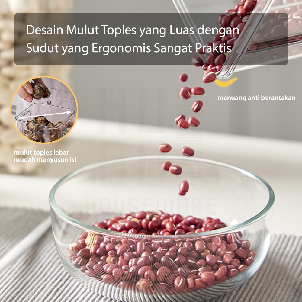 HUGO Toples Kotak Snack Kedap Udara Penyimpanan Bening Cereal Kontainer Makanan Food Storage Jar Container