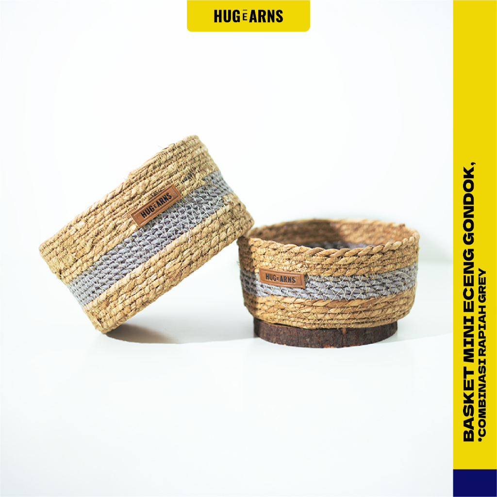 HUGeARNS - Basket Mini Eceng Gondok Combinasi Tali Rapiah Abu-Abu / Keranjang Eceng Gondok Anyaman / Keranjang Buah / Keranjang Eceng Gondok / Basket Anyaman / Anyaman Eceng Gondok / Keranjang Anyaman Eceng Gondok / Basket Eceng Gondok Anyaman Jogja