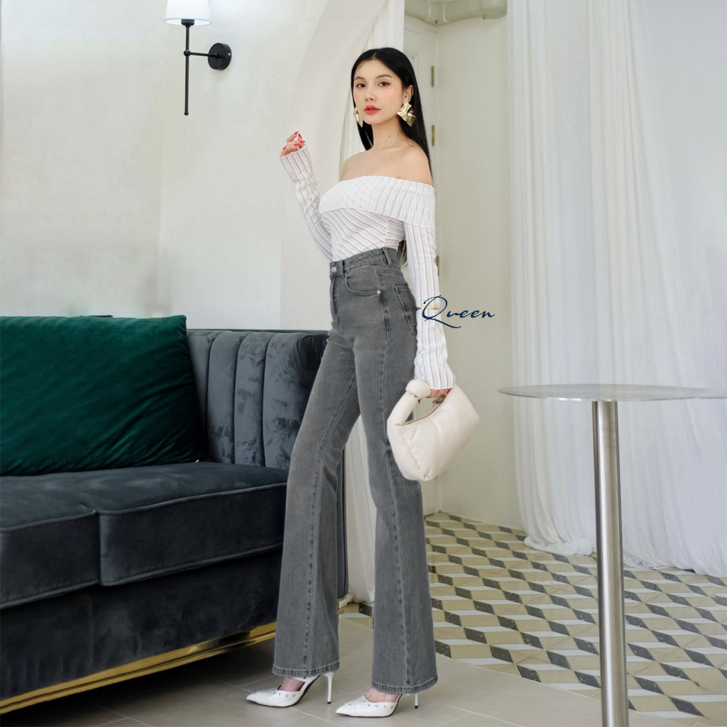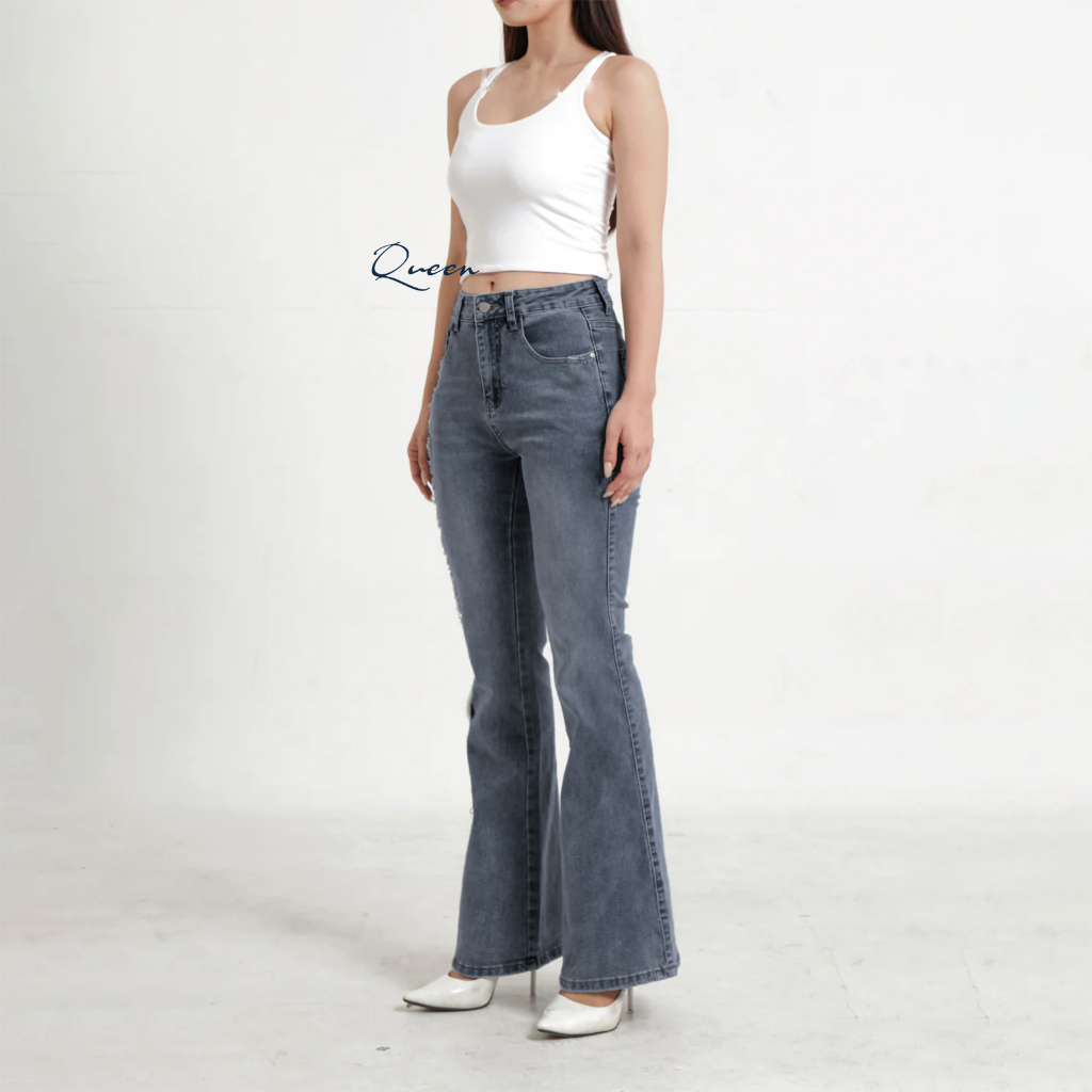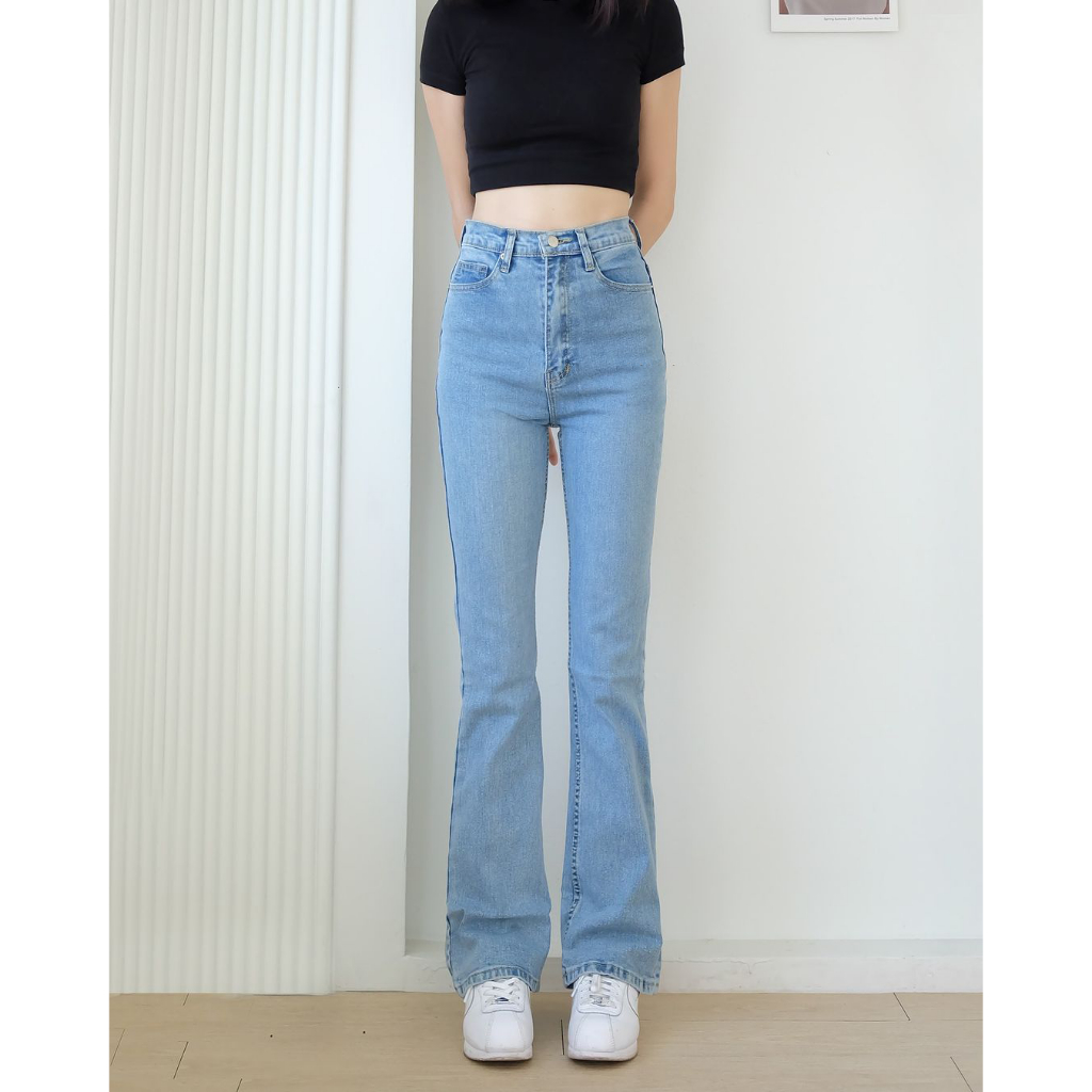 Celana Cutbray Jeans High Waist Wanita – Korean Look Active Jeans Stretch Bikin Kaki Jenjang