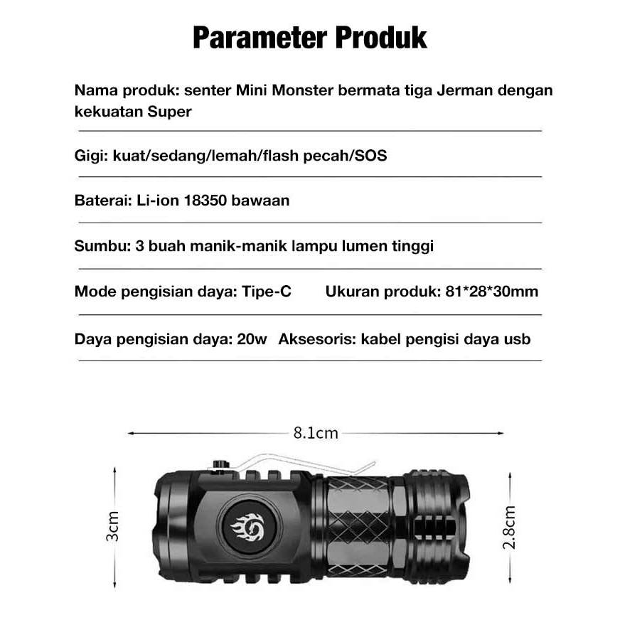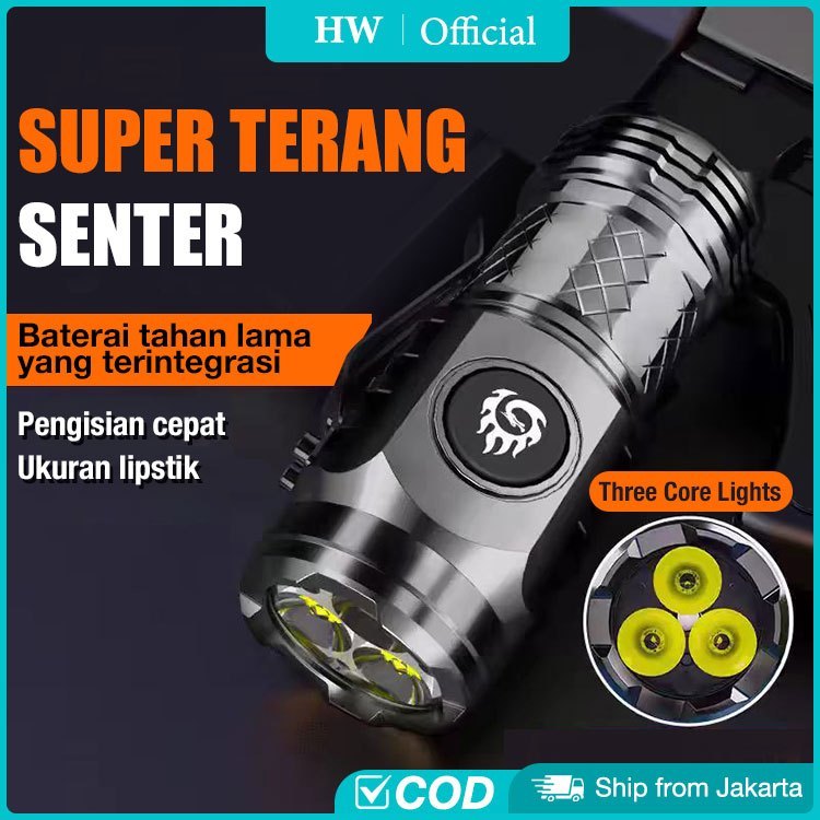 HW Senter mini led super terang senter kecil super terang flashlight senter jarak jauh waterproof senter jarak jauh lampu senter led hmspf