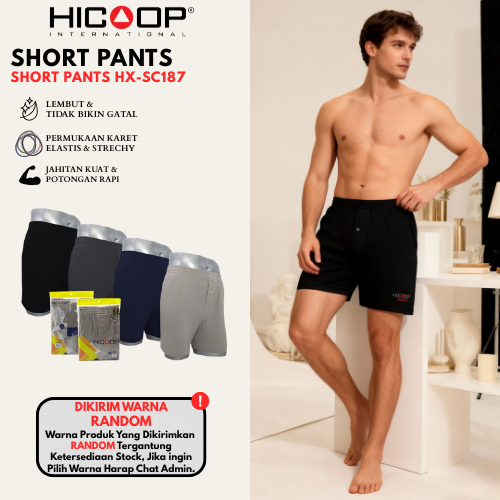 Hicoop - Celana Pendek Boxer Pria - Short Pants Men - Hitam/Abu/Coklat/Navy - 1 Pcs - HX-SC187