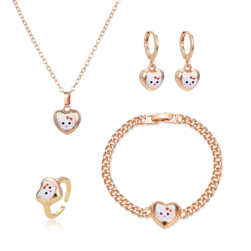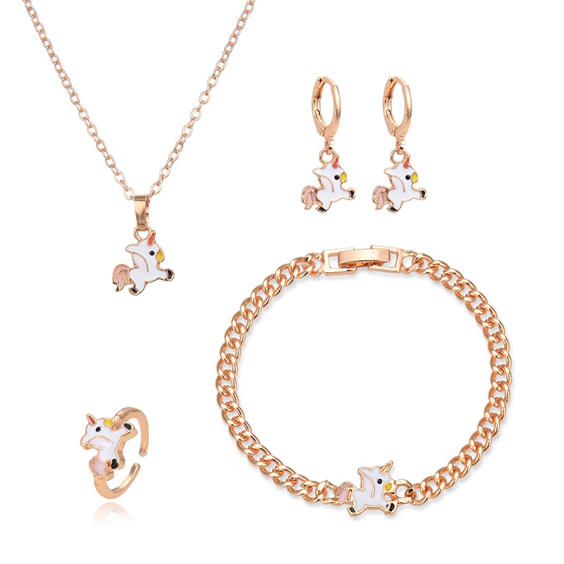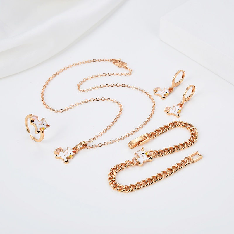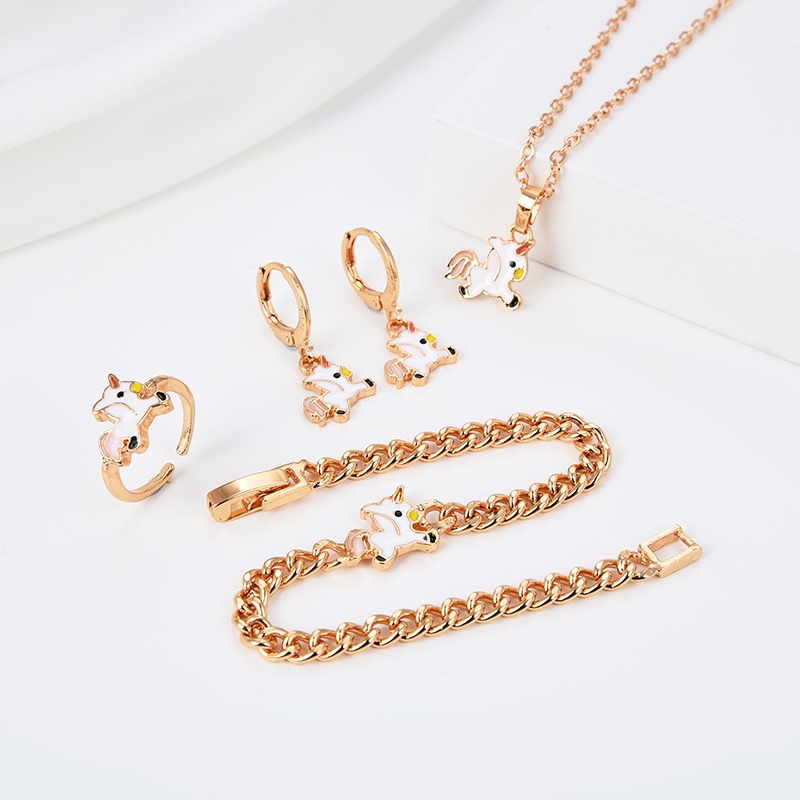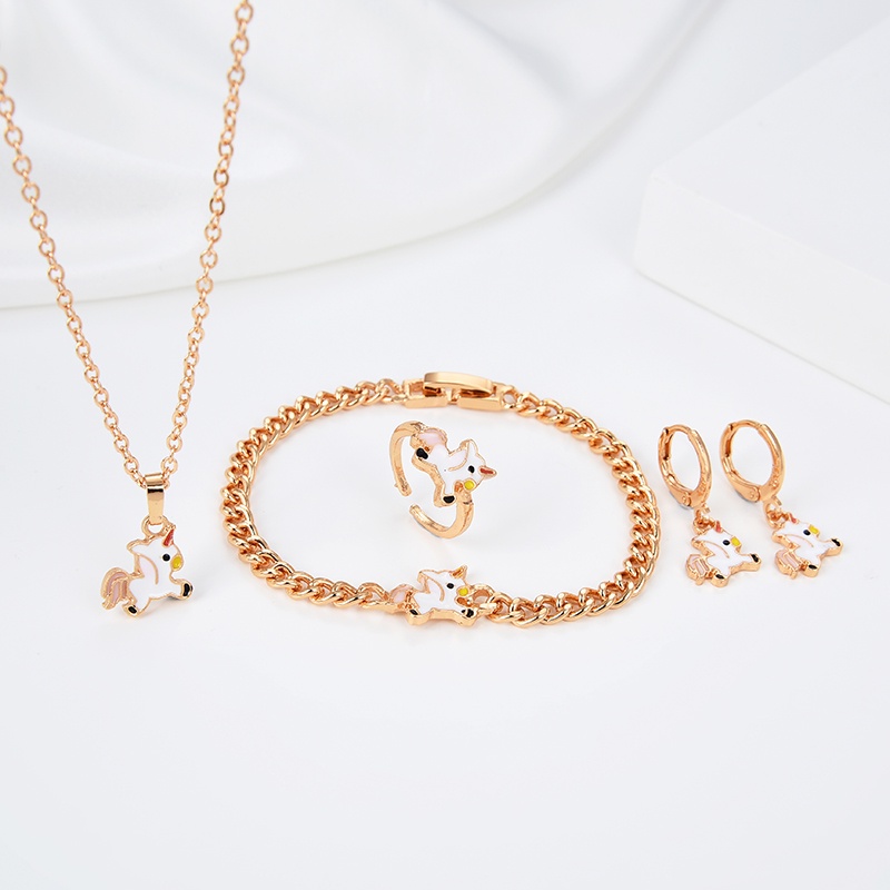 HYL JEWELRY 5pcs Kalung Titanium Set Anak Titanium Anti Karat Asli Perak Set Anting-Anting Berlapis Emas Couple Gelang Gadis Lucu Pony Hadiah Ulang Tahun Set Perhiasan 18K 15s