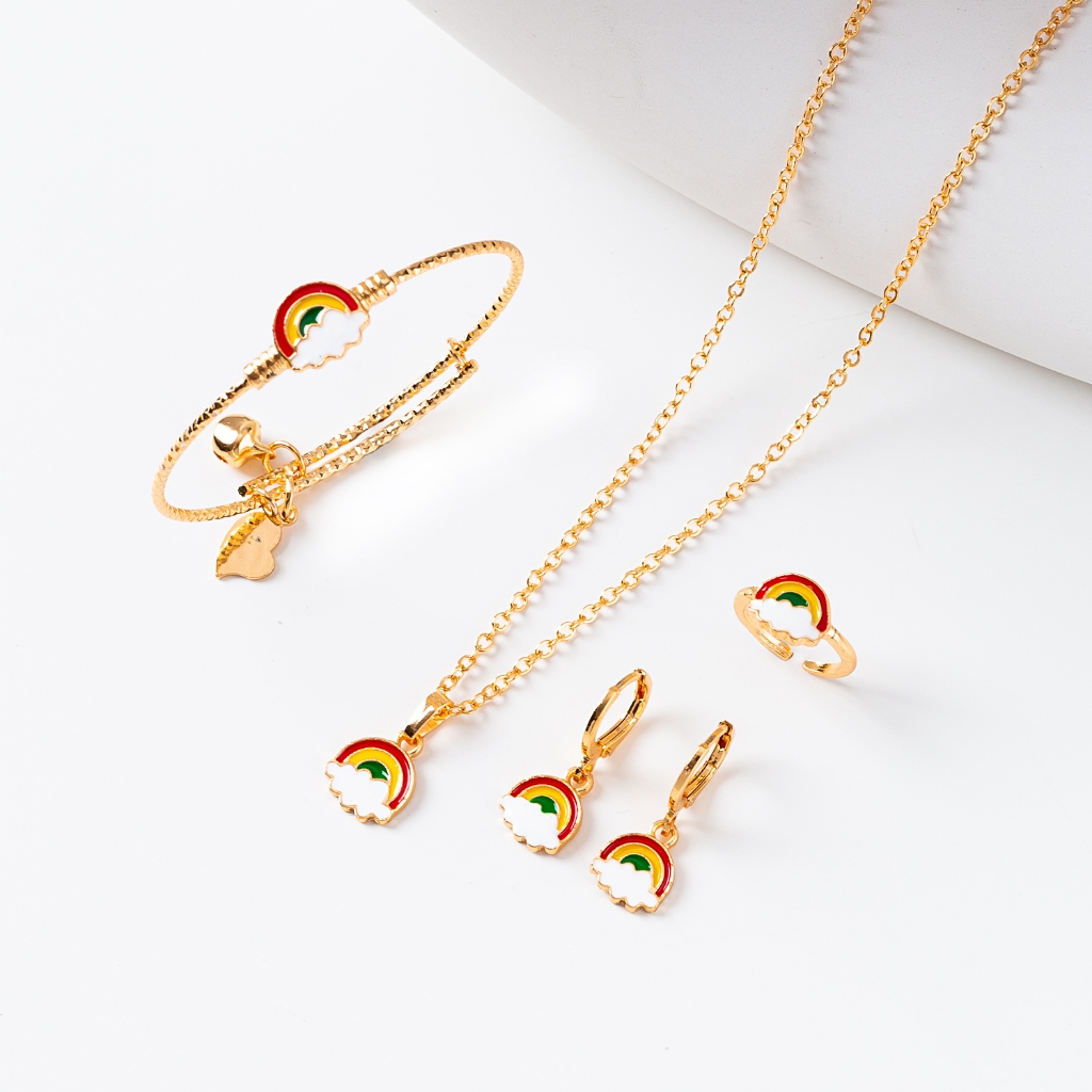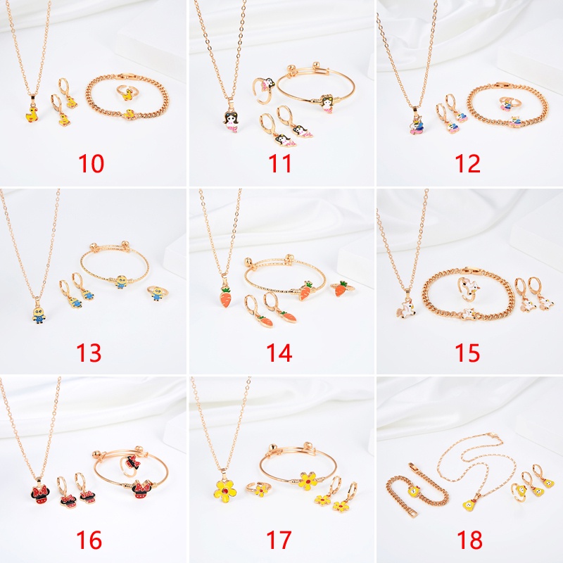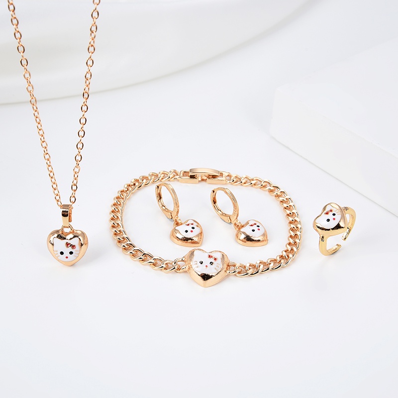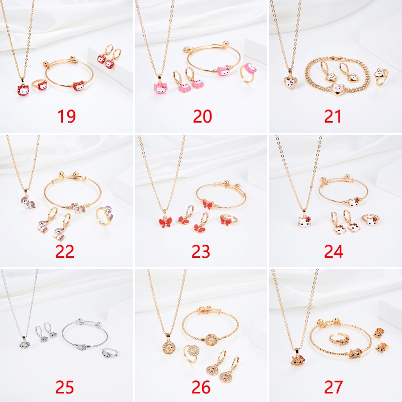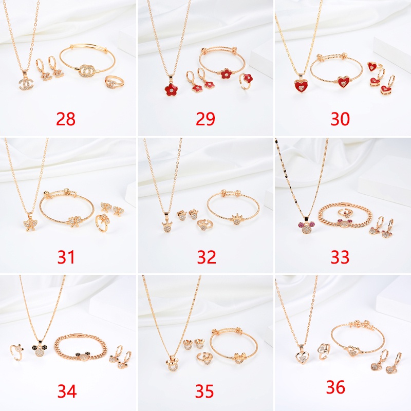 HYL JEWELRY 5pcs Kalung Titaniun set anting Couple gelang cincin fashion Hadiah ulang tahun berlapis emas Set Perhiasan 18K