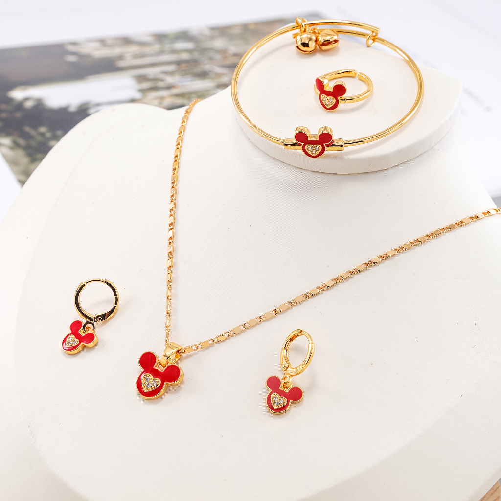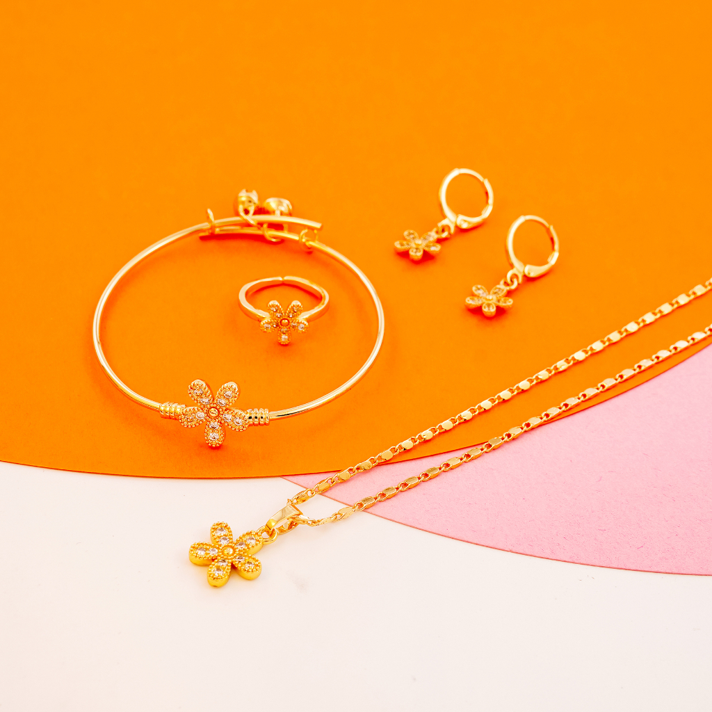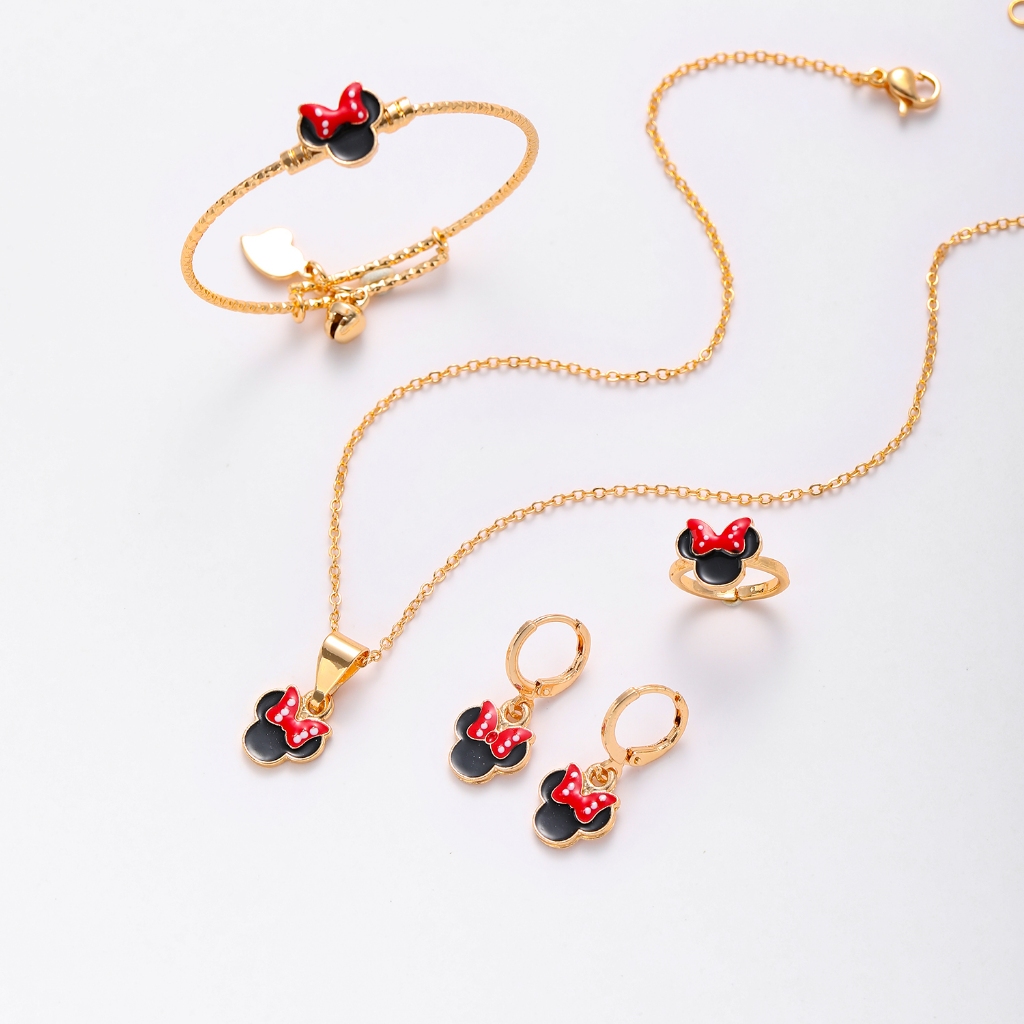 HYL JEWELRY 5pcs Kalung Titaniun set anting Couple gelang cincin fashion Hadiah ulang tahun berlapis emas Set Perhiasan 18K