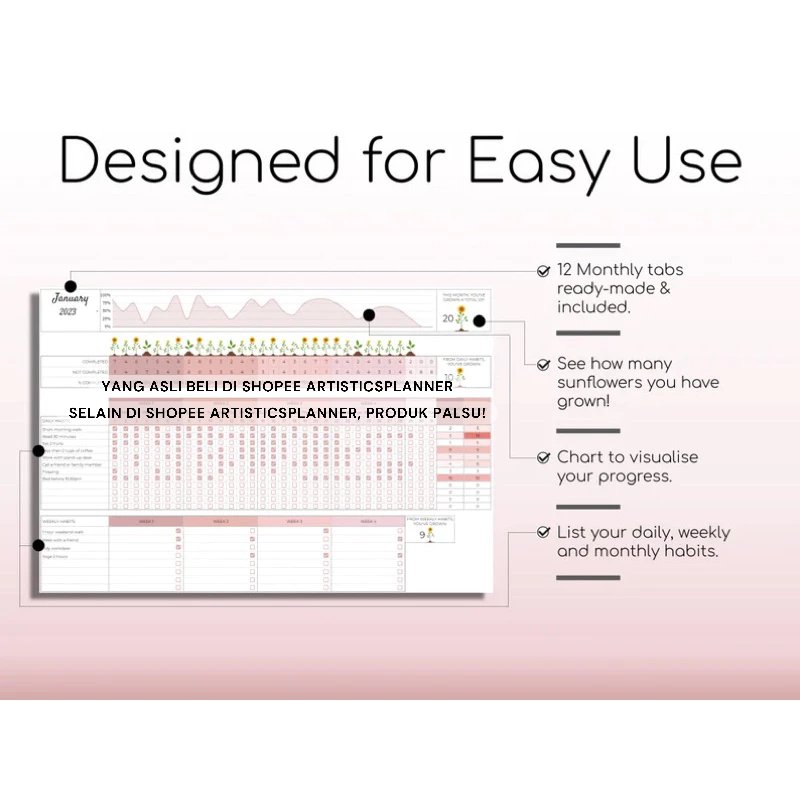 Habit Tracker Spreadsheet | Habit Daily Weekly Monthly Planner | Digital Dashboard Goal Planner | Simple Tasks Planner | ArtisticsPlanner | GS46