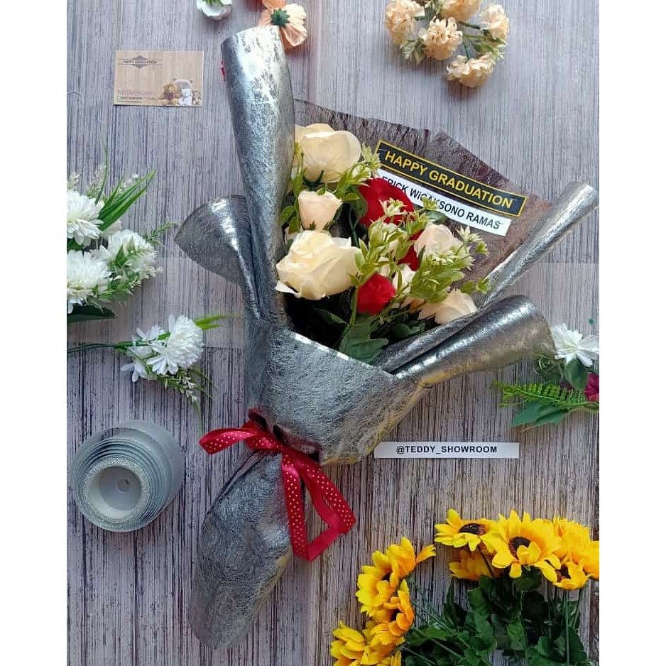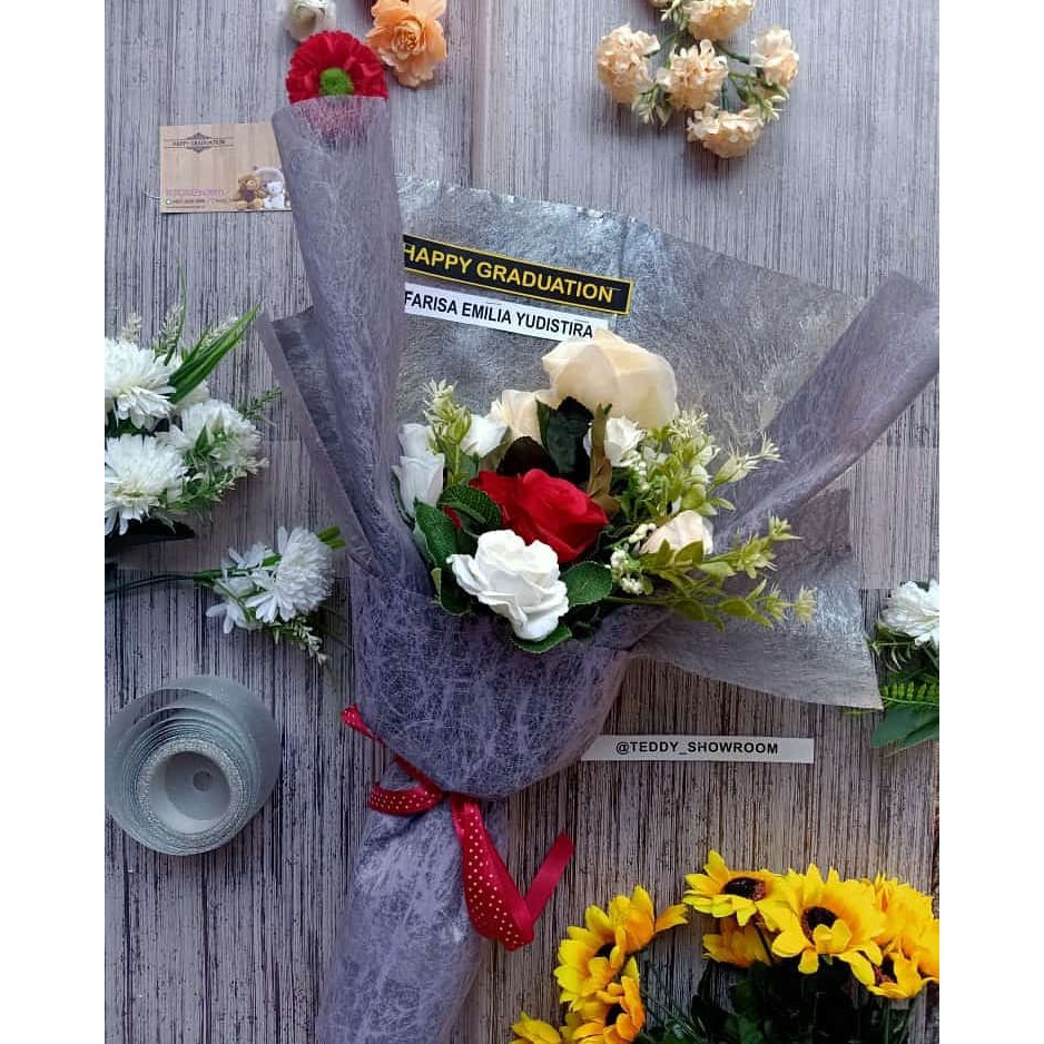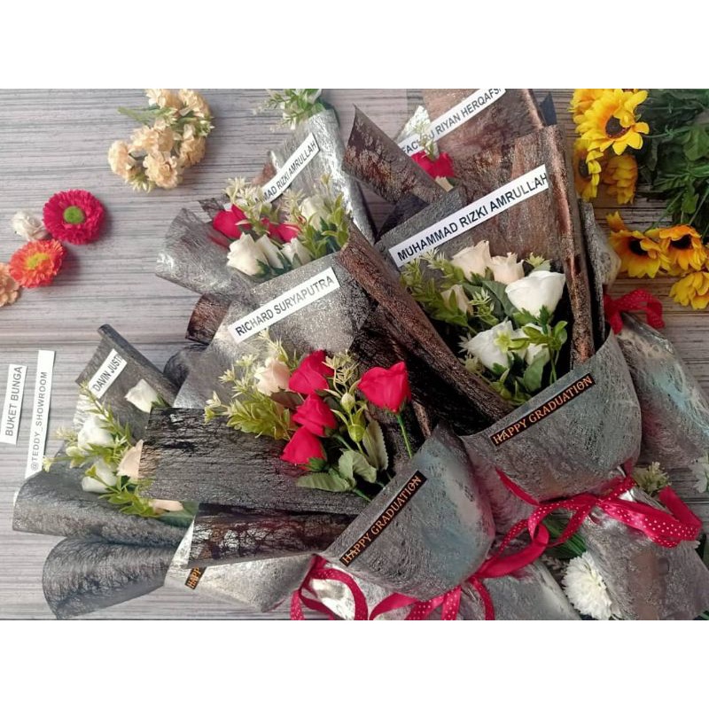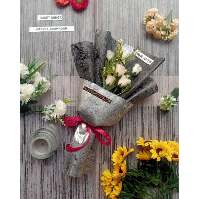Hadiah Bucket Bunga Wisuda Cewek Cowok Free Custom Kartu Ucapan & Nama
