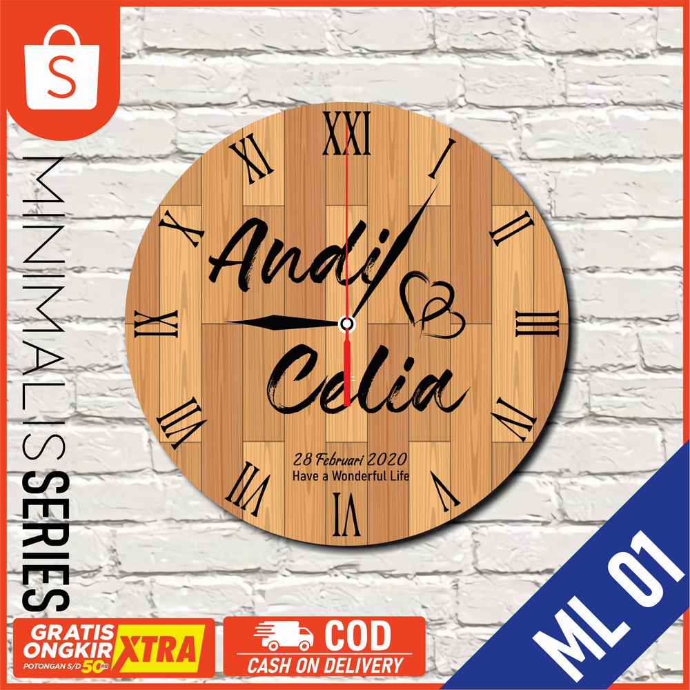 Hadiah Kado Jam Dinding Pernikahan souvenir Vintage Couple Free Custom ( ML 01 )
