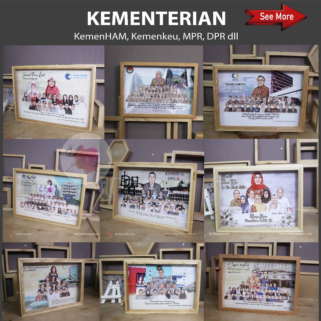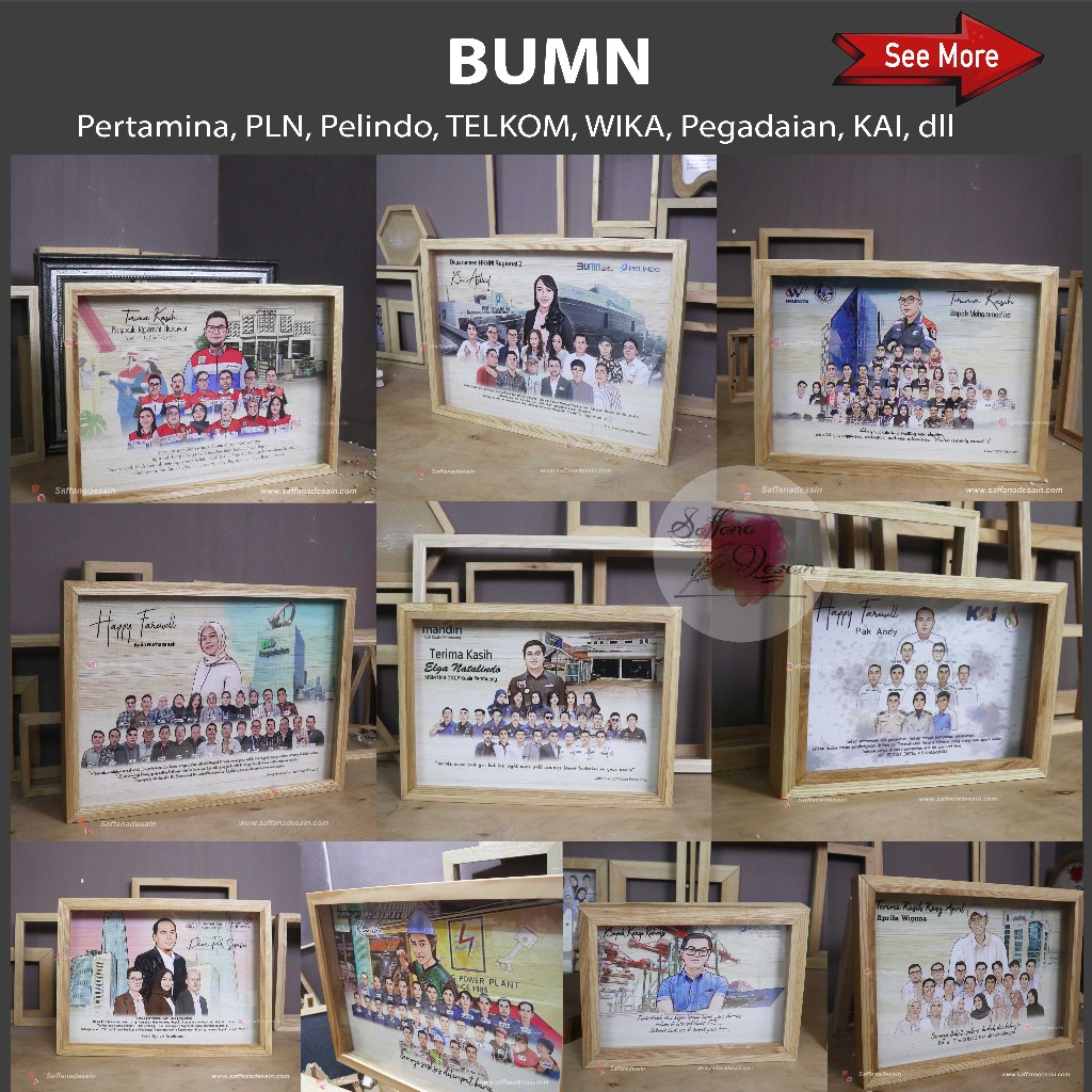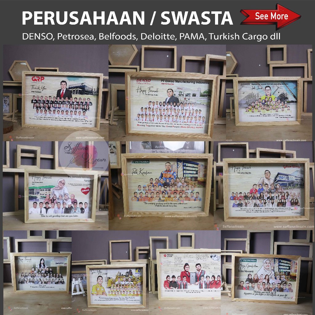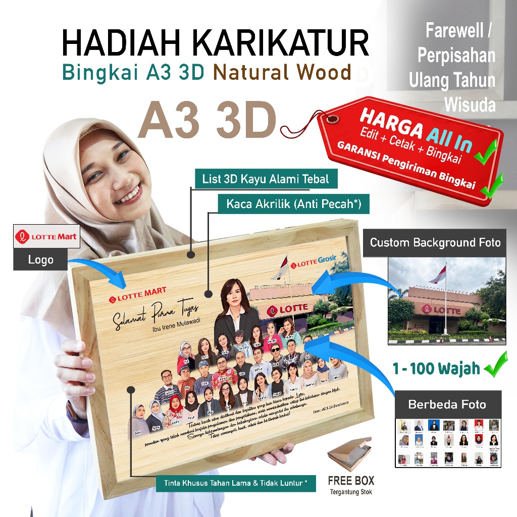 Hadiah Karikatur Bingkai 3D A3 Natural Wood - Perpisahan, Farewell, Purna Tugas dsb - Saffana Desain