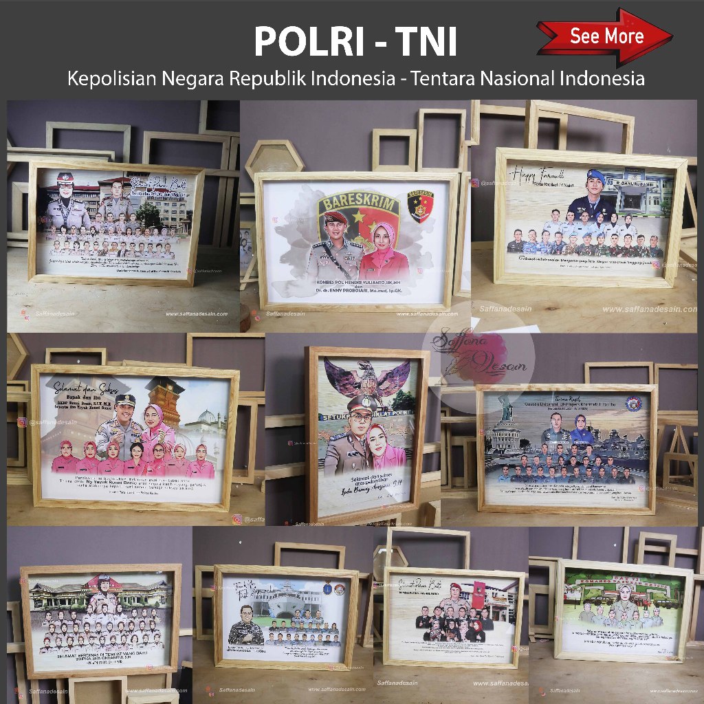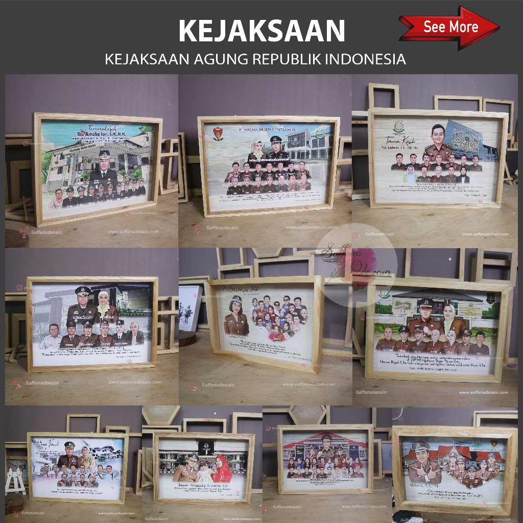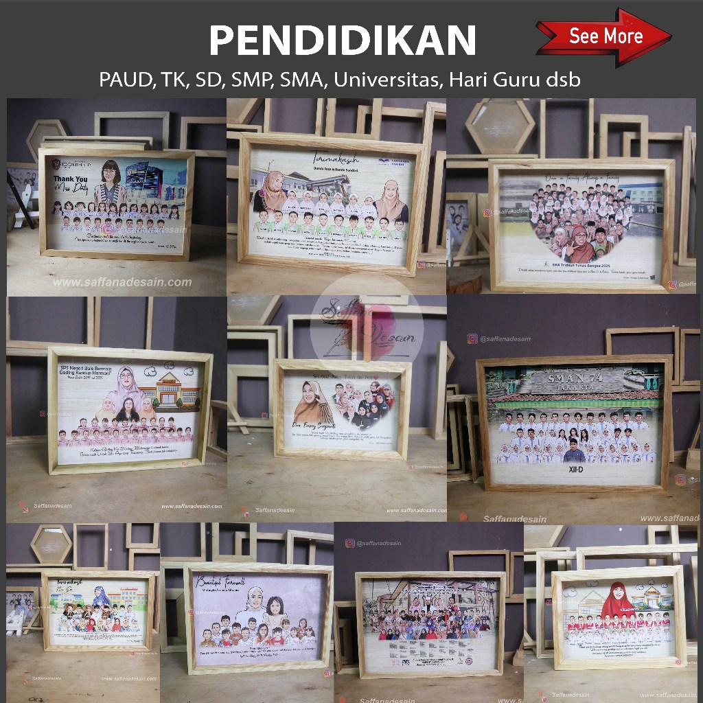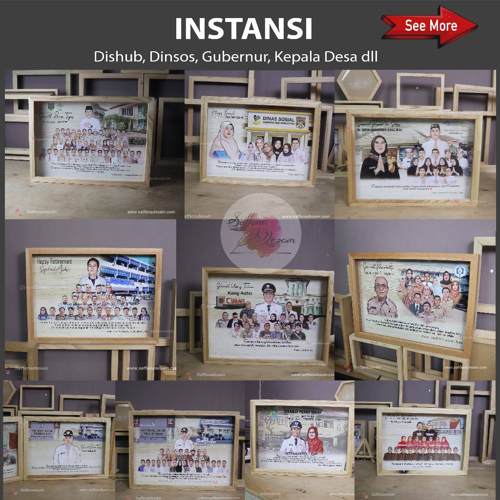 Hadiah Karikatur Bingkai 3D A3 Natural Wood - Perpisahan, Farewell, Purna Tugas dsb - Saffana Desain