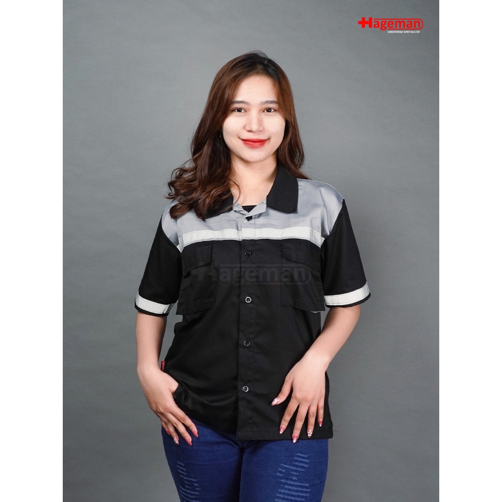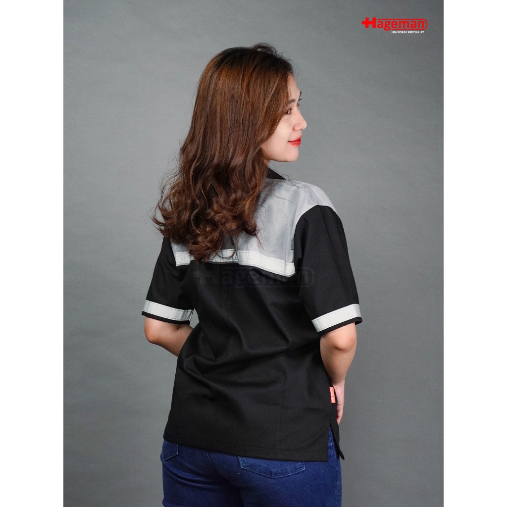 Hageman - Wearpack Lengan Pendek / Baju Wearpack Safety Lengan Pendek Warna Hitam Kombinasi Abu