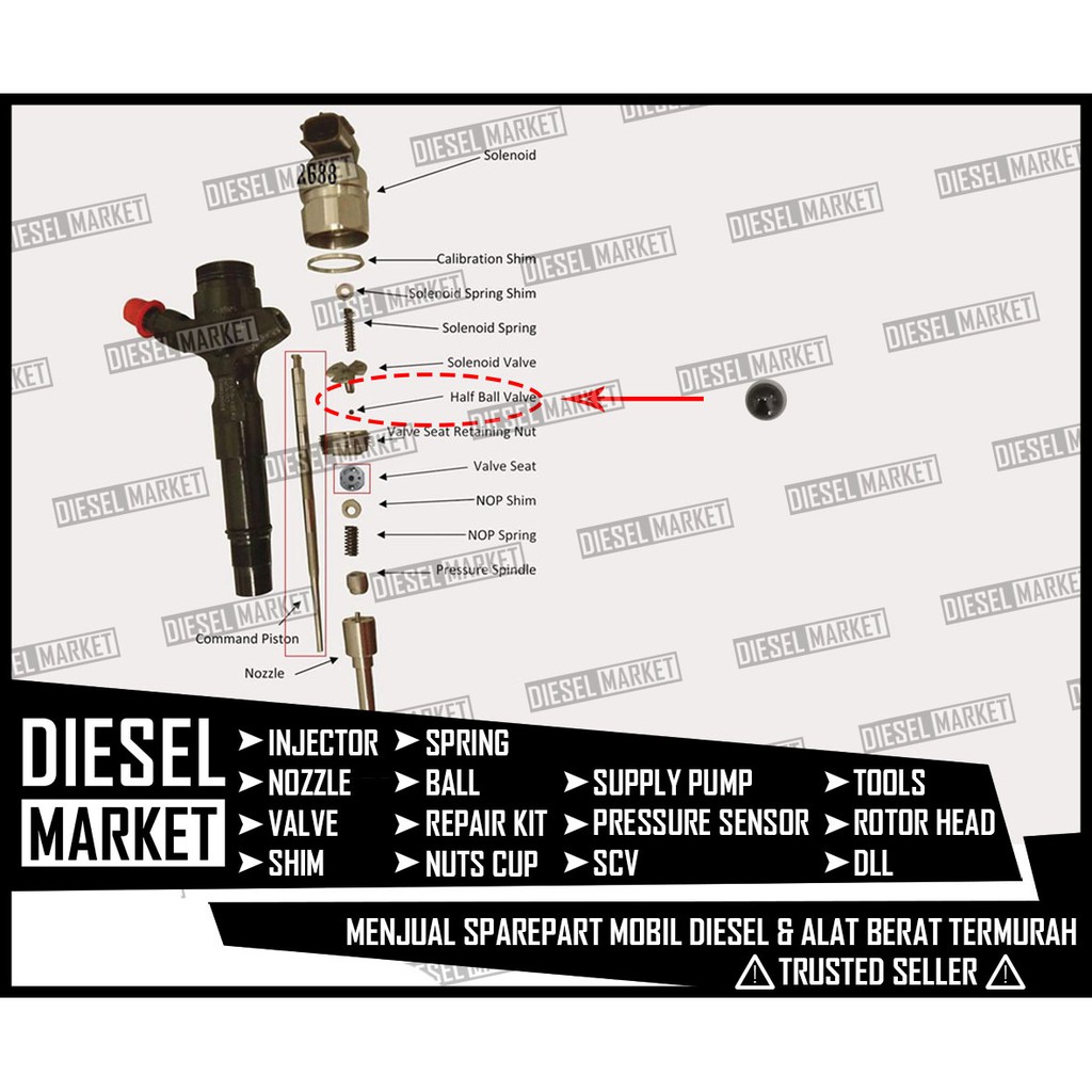 1 butir saja Half Ball Injector Denso Triton - Ball kupu-kupu Bola Setengah Injektor Hilux Dmax