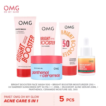 OMG Bright Booster Kit | Paket Perawatan Skin Care Lengkap - Oh My Glow (Face Wash, Moisturizer, Sunscreen, Serum, Ceramide)