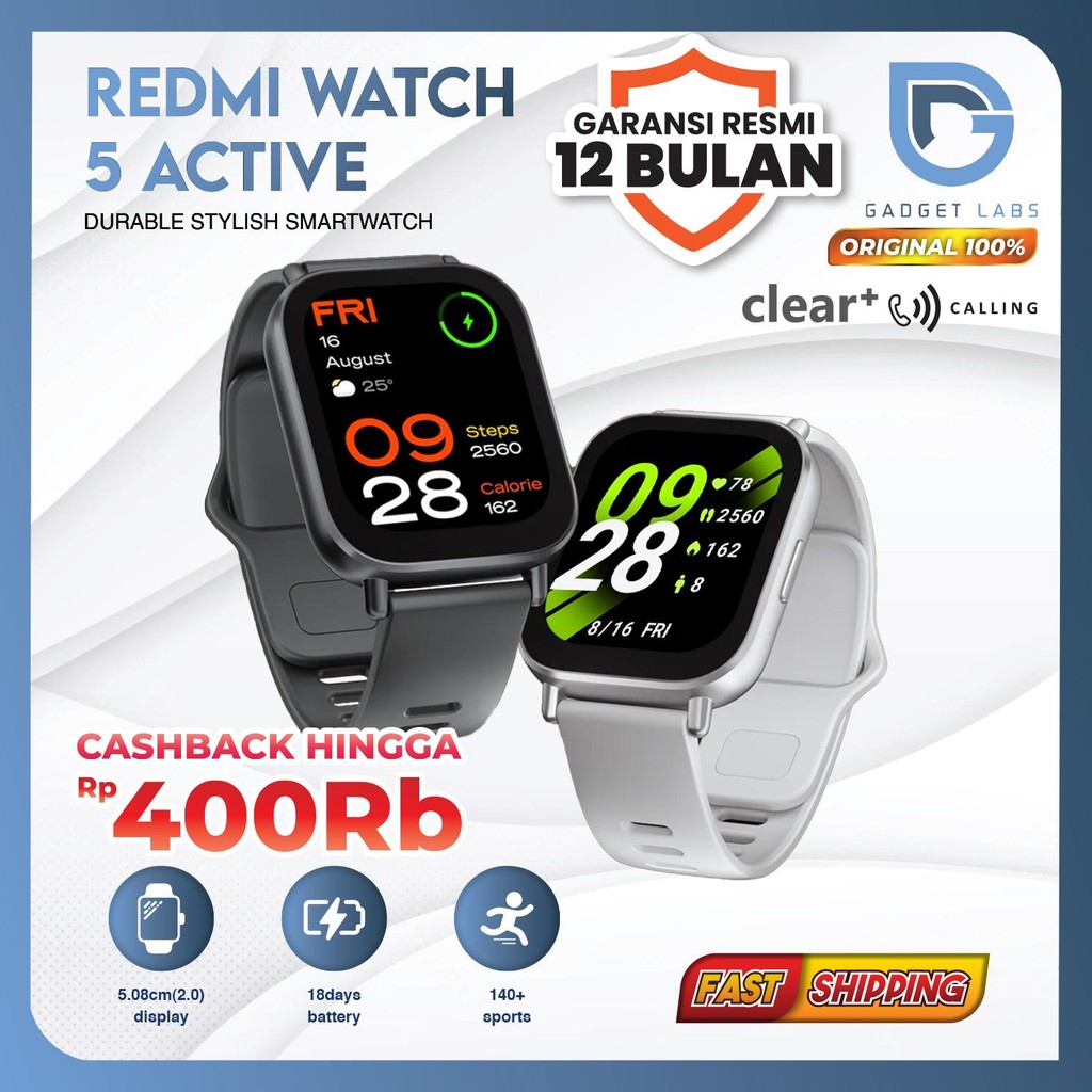 Xiaomi Mi Redmi Watch 5 Active Smartwatch | Jam Tangan Pintar Bluetooth Call Pria dan Wanita | Garansi Resmi