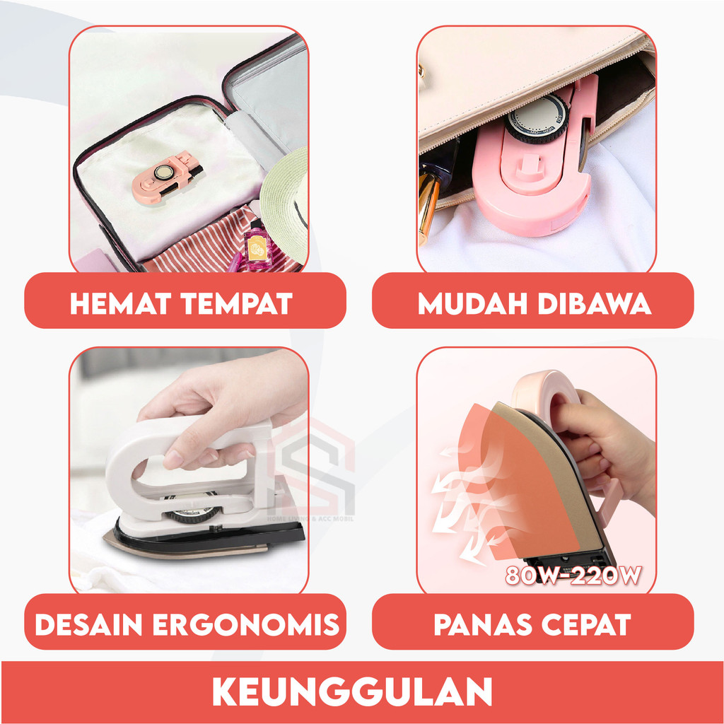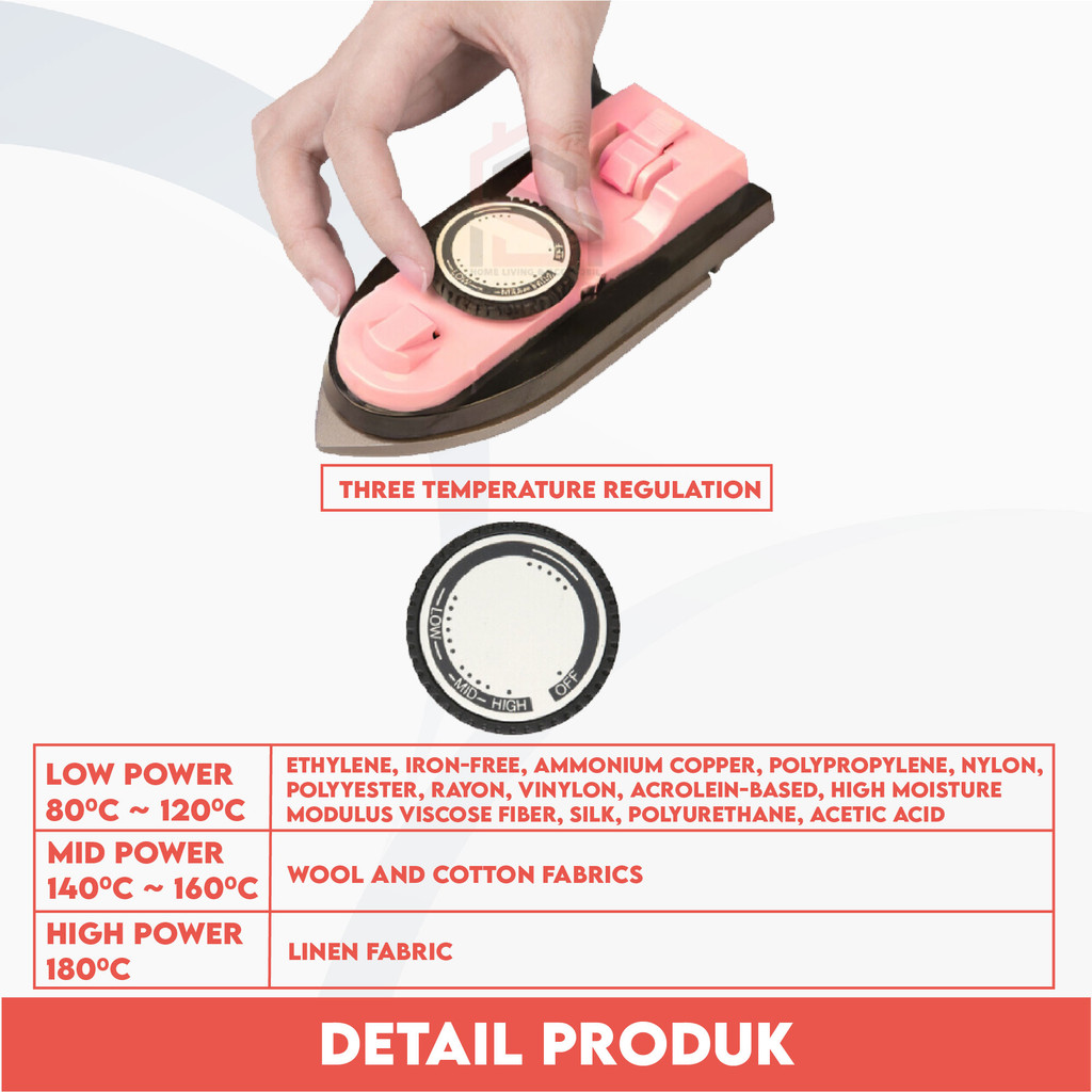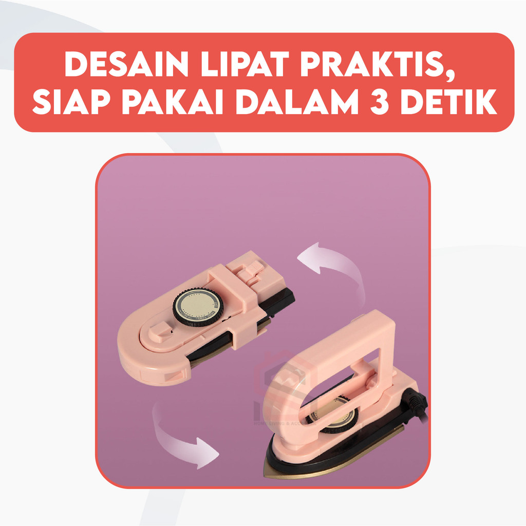 Setrika Mini Travel 3 Suhu Handle Lepas Pasang Anti Lengket Detachable Dry Iron Portable