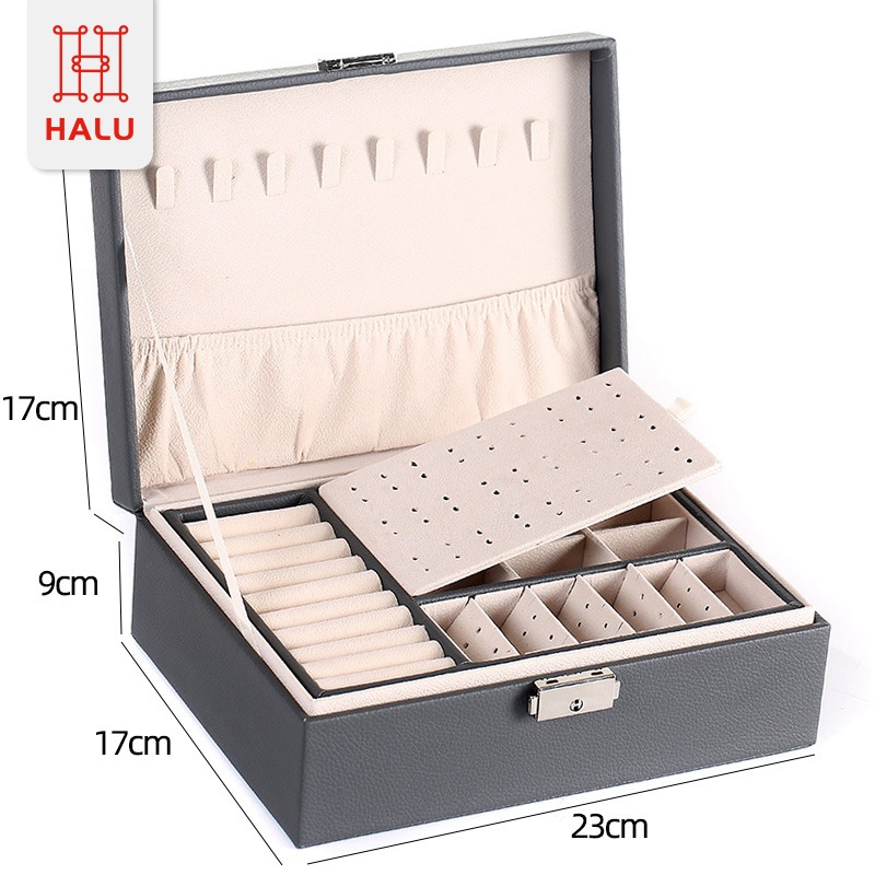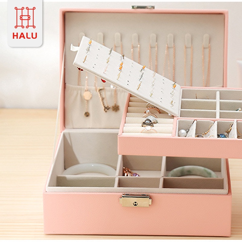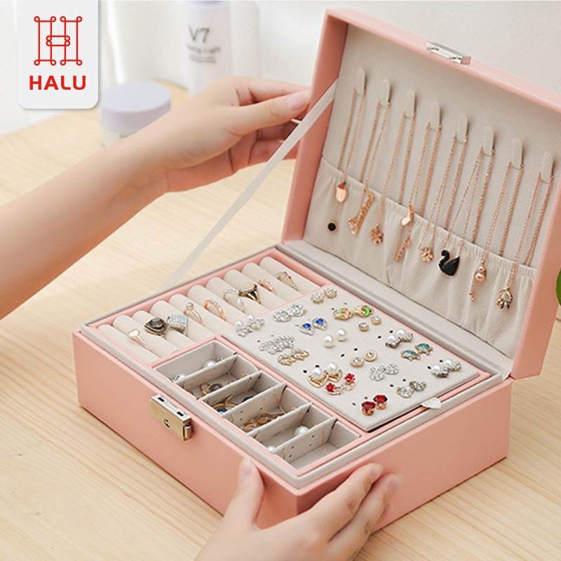 Halu Kotak Perhiasan Kotak Cincin Kalung Tempat Penyimpanan Jewelry Box Case Anting HDK310