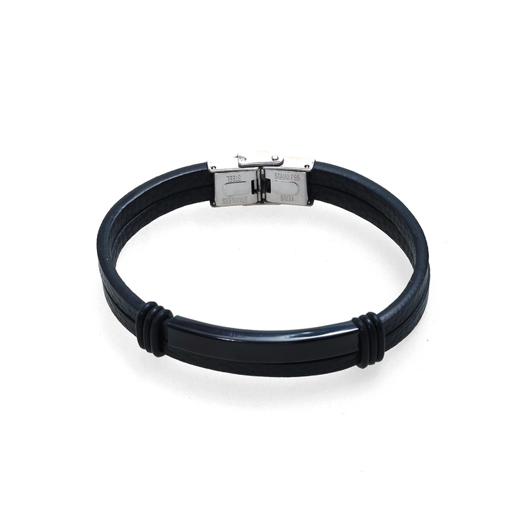 Hamlin Aleda Gelang Kasual Pria Wanita Aksesoris Fashion Adjustable Strap Material Leather ORIGINAL - Black