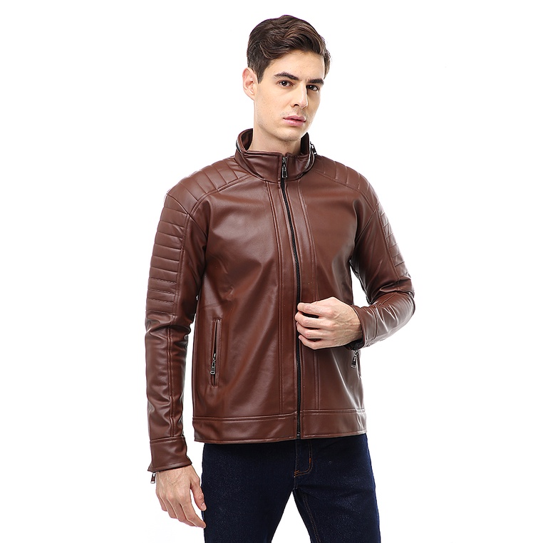 Hamlin Halbert Outerwear Jaket Kulit Pria Waterproof & Windproof Material Leather ORIGINAL - Dark Brown