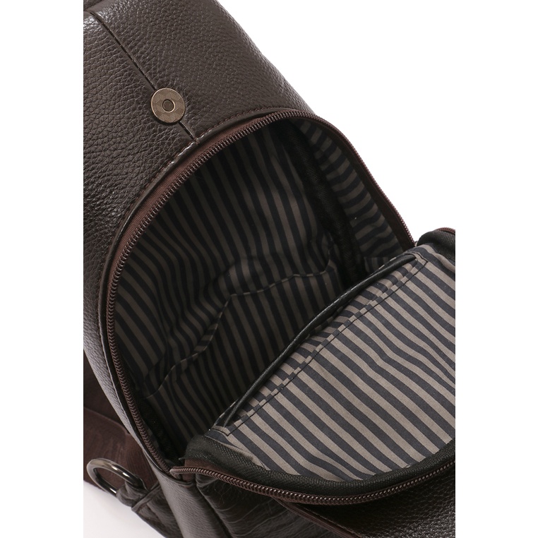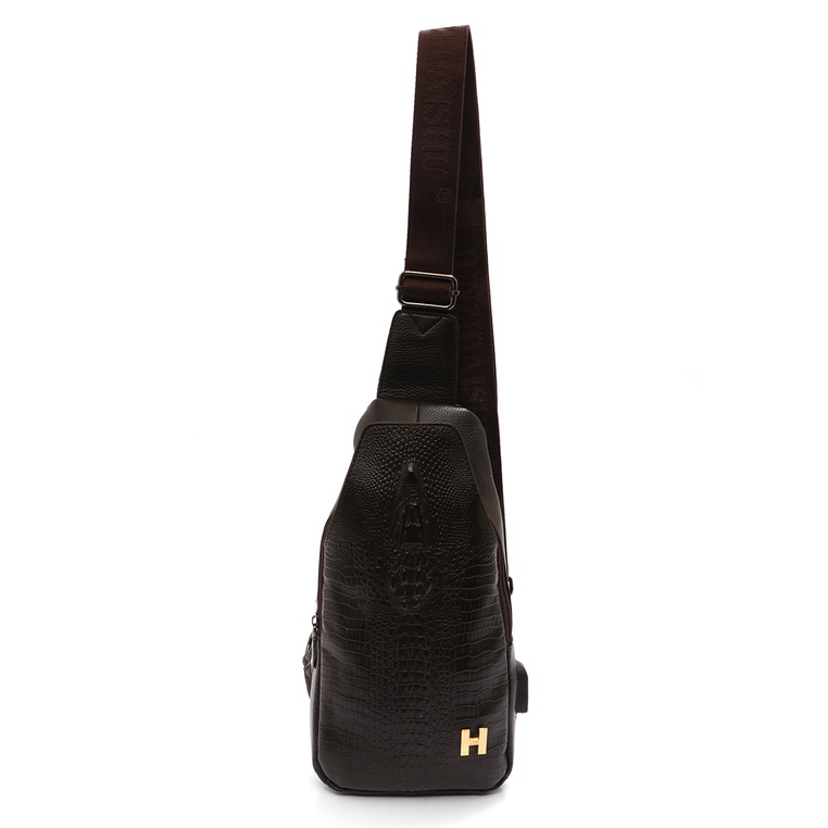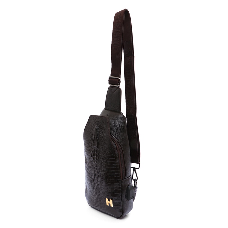 Hamlin Roger Slingbag Pria Casual USB Port Motif Crocodile Material Leather ORIGINAL - Brown