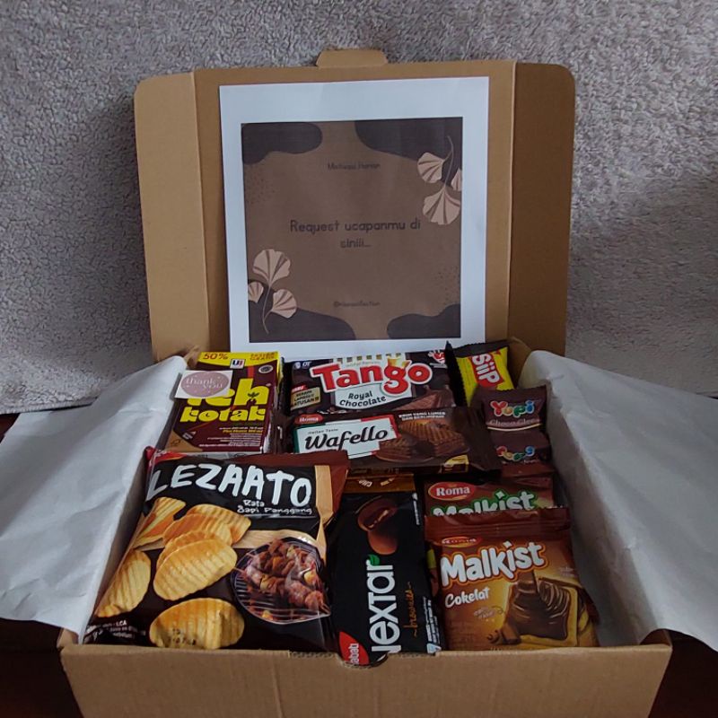 Hampers Snack Box / snack gift box / hadiah ulang tahun / hadiah wisuda / hadiah unniversary / hampers makanan