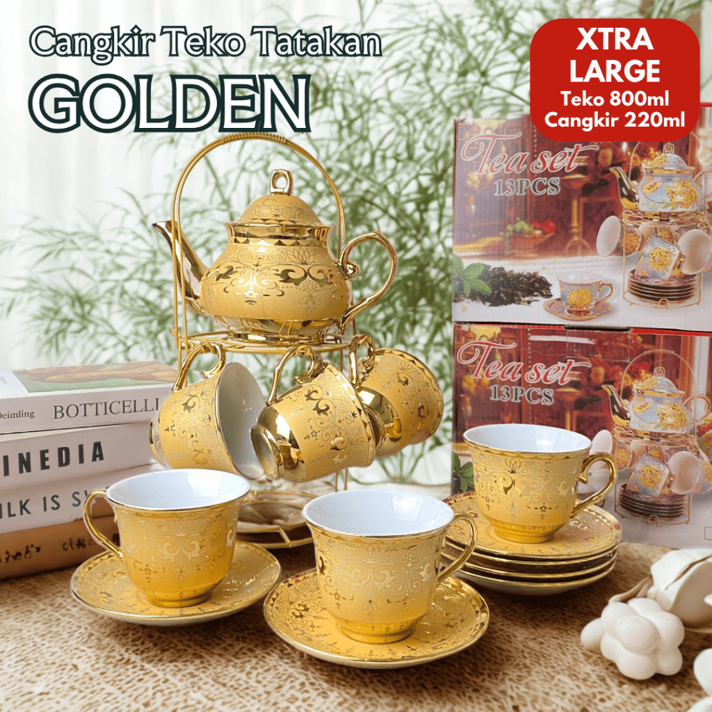 Hampers Tea Set Keramik Cangkir Teko Tatakan LABIRIN Pajangan Set Souvenir Gelas Mug Mewah