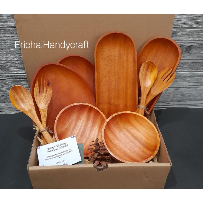 Hampers piring kayu mahoni/hampers set alat makan kayu/hampers couple kayu 03C