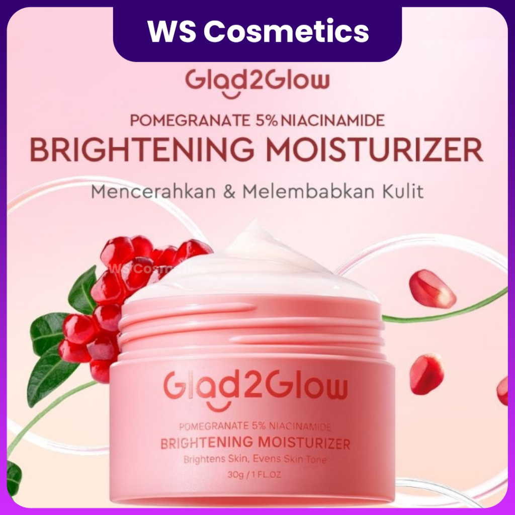 GLAD2GLOW Pomegranate Niacinamide Brightening Moisturizer | 30g Pelembab Wajah Whitening Glowing