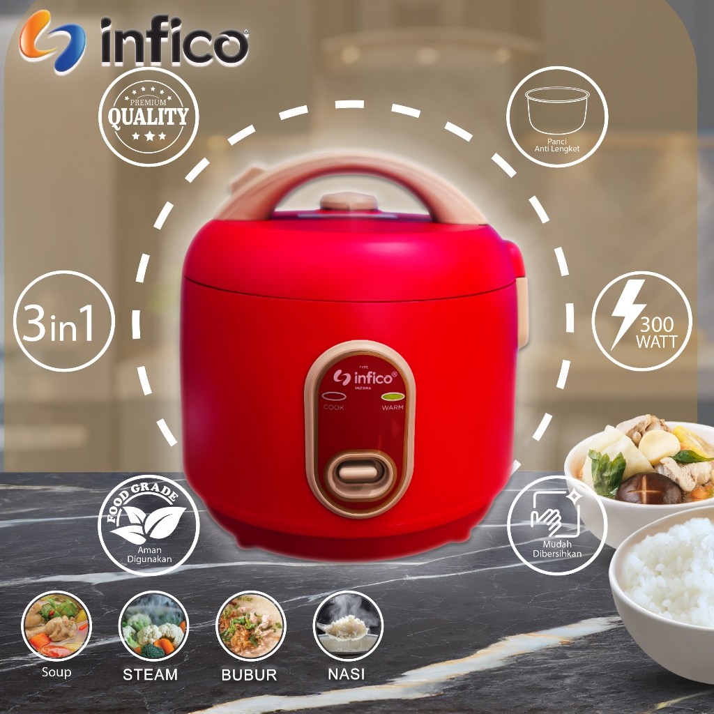 INFICO Mini Rice Cooker 0.8 Liter Portable Magic Com Magic Jar 300 watt Hemat Energi BER-SNI, MEWAH