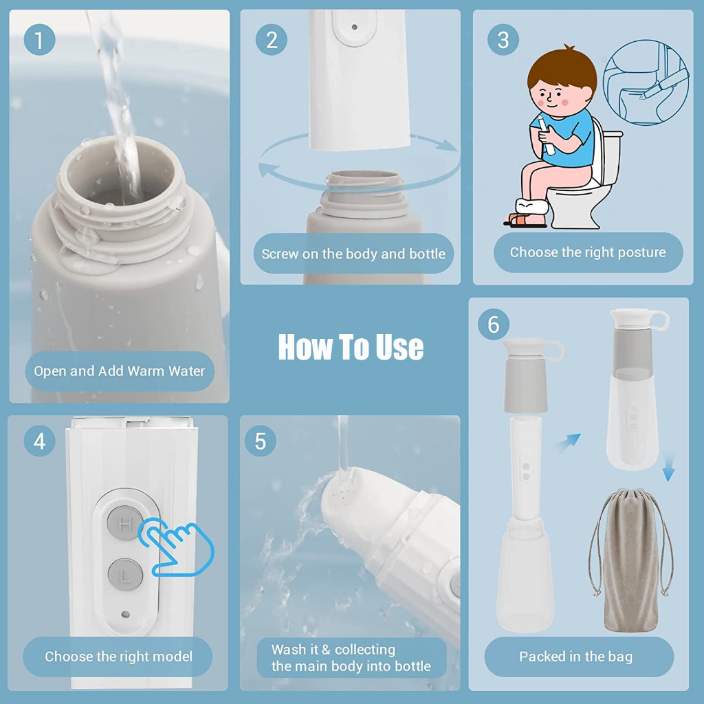 Airuidu YB460 Bidet Portable Travel Bidet Electric USB rechargeable Jet Washer Portable Electric Sprayer Travel Shower Personal Cleaner Jet Washer