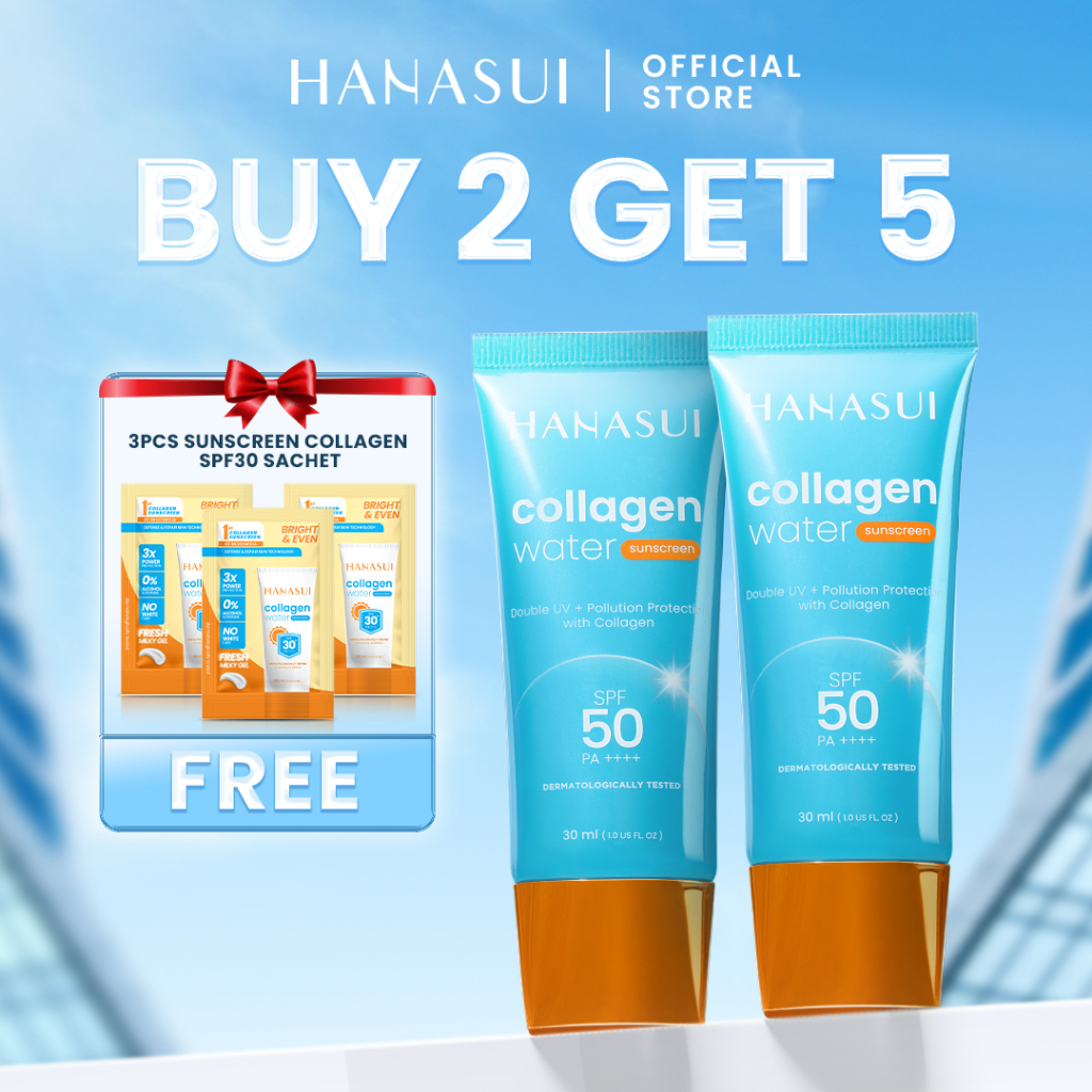 Hanasui Collagen Water Sunscreen SPF 50 - Ringan & Menenangkan Kulit No Whitecast Tidak Kusam Berminyak