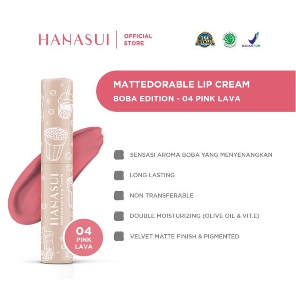 Hanasui Mattedorable Lip Cream Boba Edition 04 Pink Lava