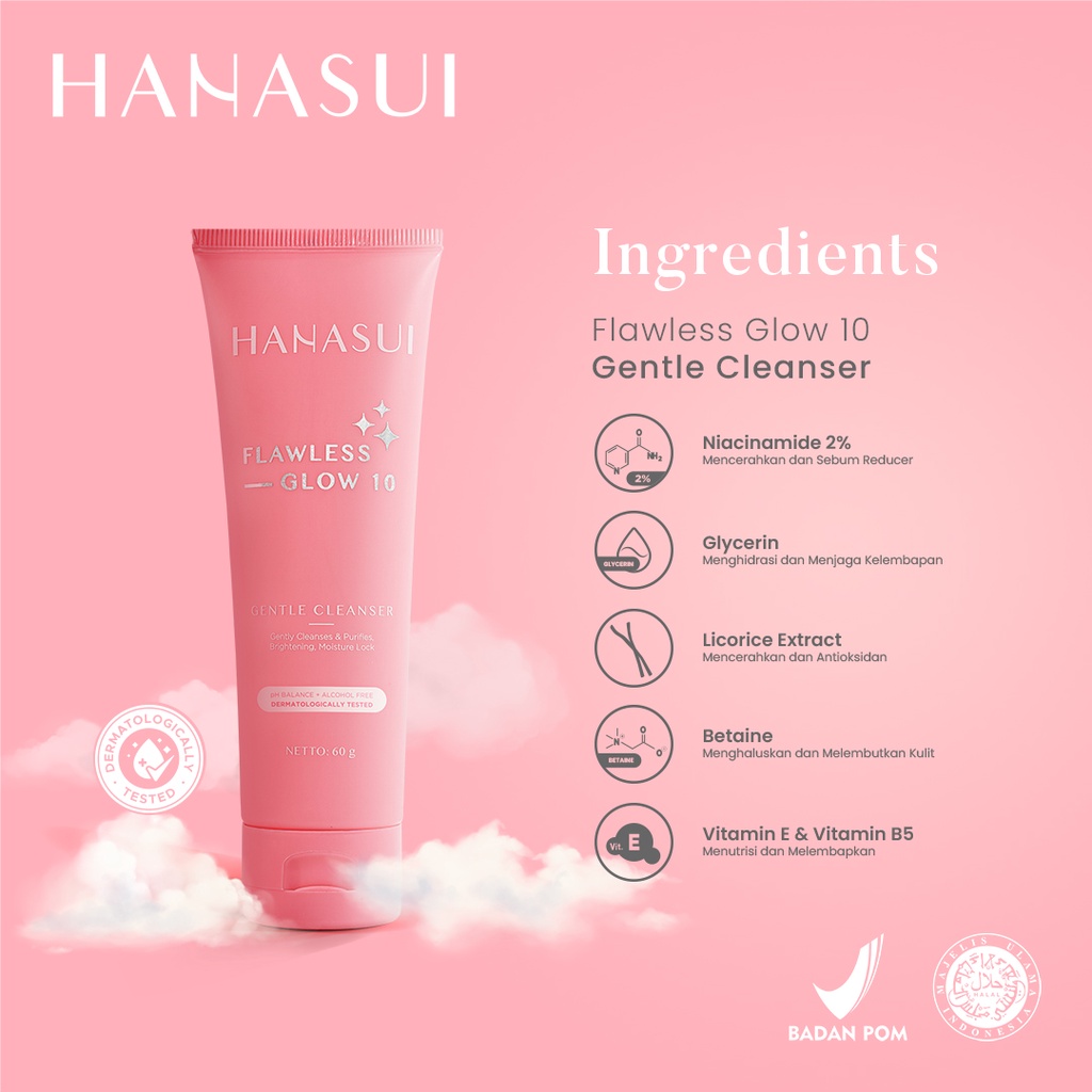 Hanasui paket lengkap glow(1 face wash,1essence,1day cream,1night cream)