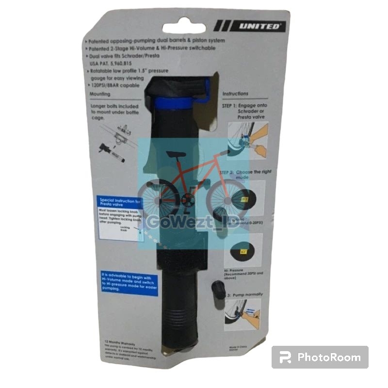 Hand Pump Pompa Tangan Mini Portable Sepeda dengan Meteran UNITED PM-030 | High Quality