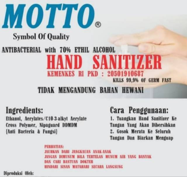 Hand Sanitizer Motto 30 ml Repack Sticker Logo Custom