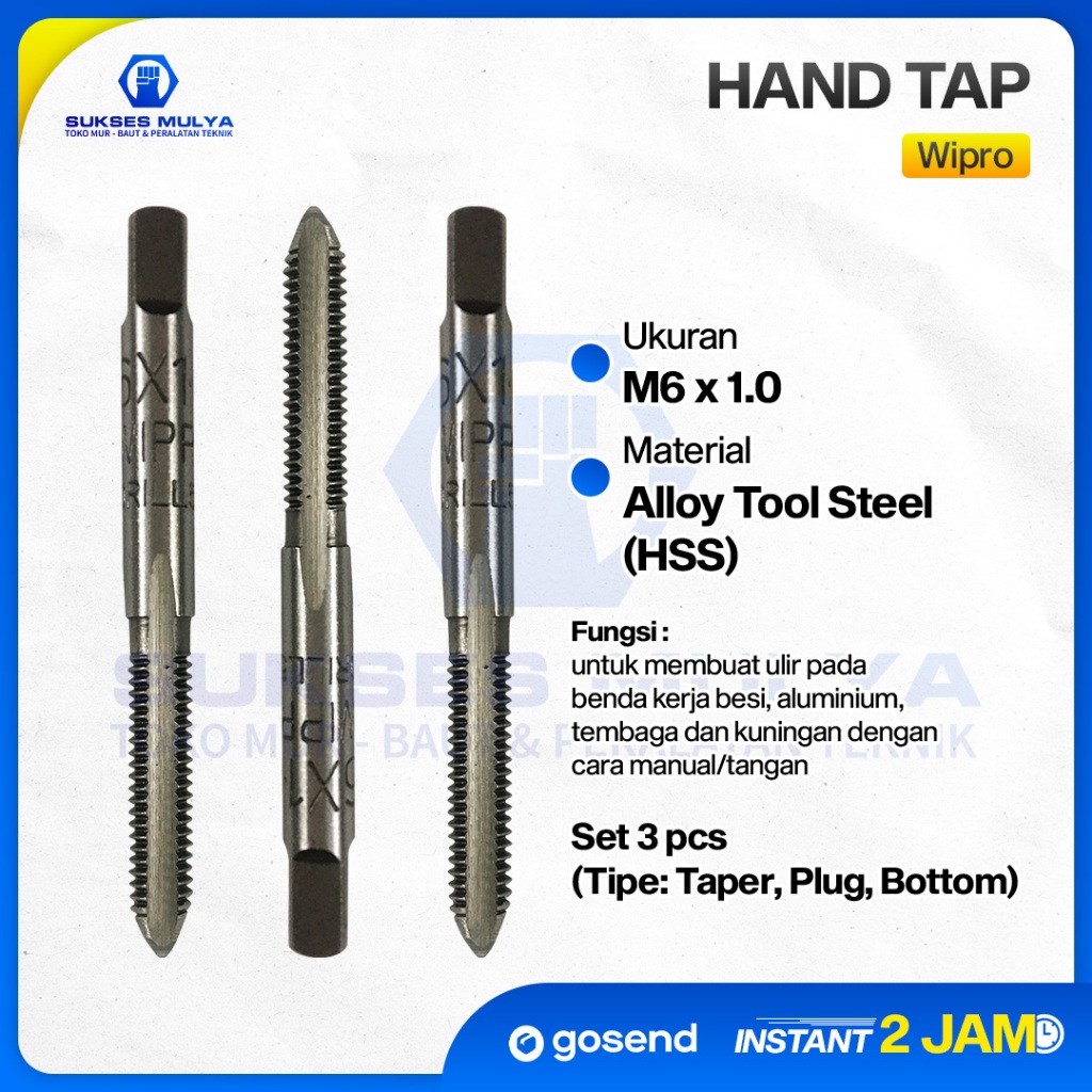 Hand Tap Wipro M6 x 1.0 set isi 3 pcs.